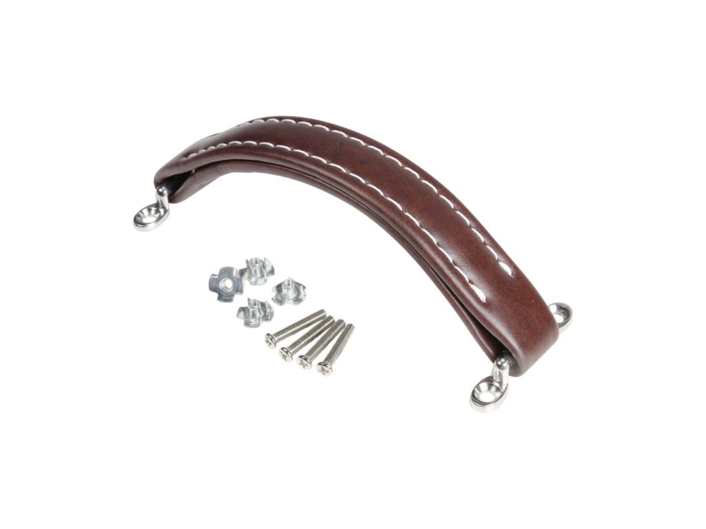 Adam Hall - 3414 BRN • držadlo kožené • umělá kůže • hnědé • ocelová vložka • dodává se se 4 podložkami a 4 maticemi šroubů (M4x25) • hmotnost: 0,095 kg