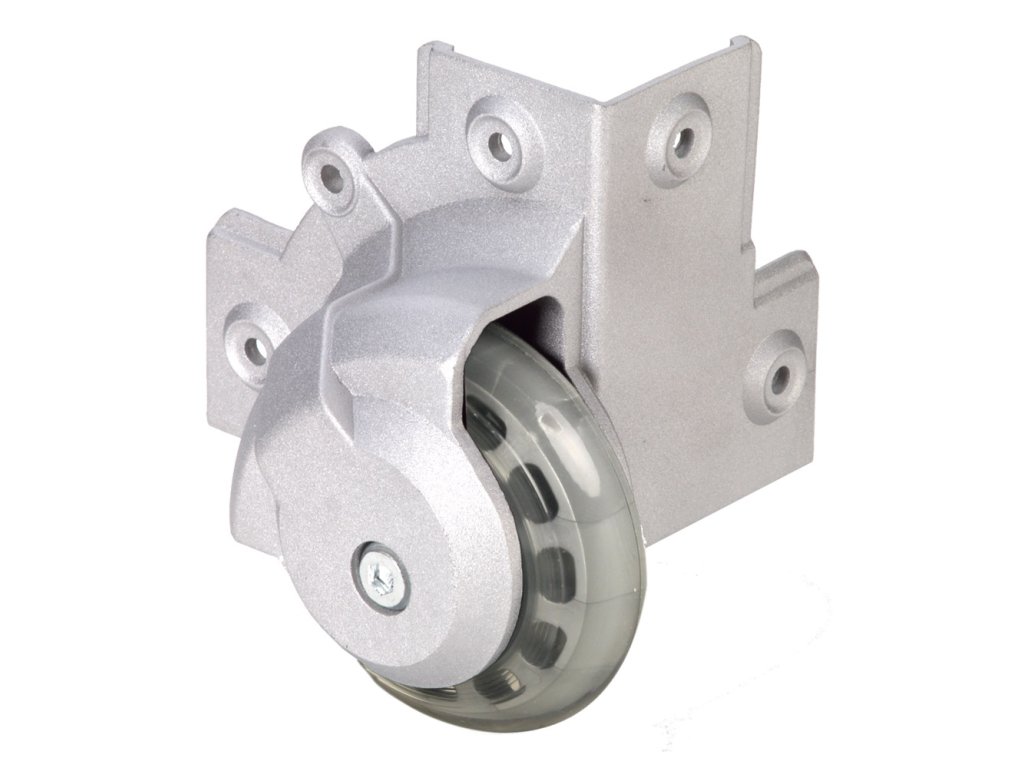 Adam Hall - 37501S • kolečko rohové vnější • 75 mm • kolo je vyrobeno z pružného materiálu, který je téměř bezhlučný • bezpečné zatížení je 110 kg na pár • upevňovací otvory o průměru 5 mm • hmotnost: 0,408 kg
