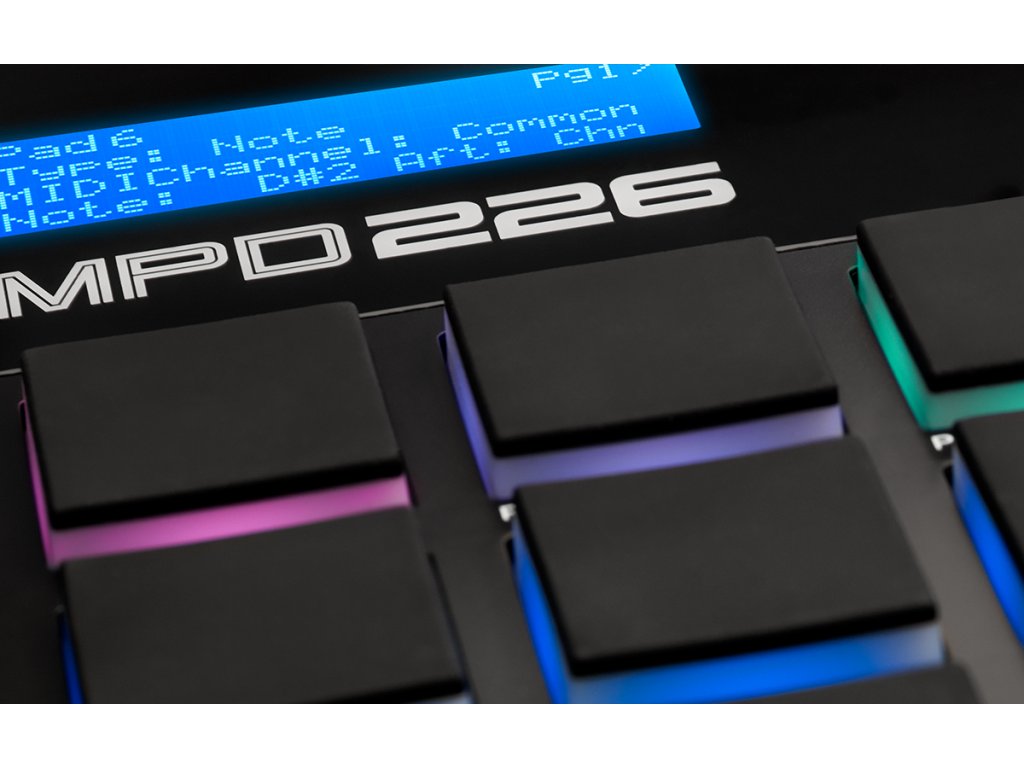 MPD226 je MIDI – over – USB pad kontroler, vhodný především pro producenty, muzikanty a DJs. Rozmístění ovládacích prvků je intuitivní a v kombinaci s jednoduchou konektivitou pomocí USB se podařilo přenést feeling klasického beatmakingu do prostředí produkce na PC.