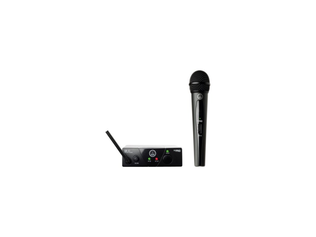 AKG - WMS 40 MINI Vocal • bezdrátový zpěvový set série WMS40 Mini • přijímač SR40 Mini2 • mikrofonní vysílač HT40 Mini • frekvenční rozsah 40Hz – 20kHz • napájení na 1xAA baterii • provoz až 30h • malé rozměry