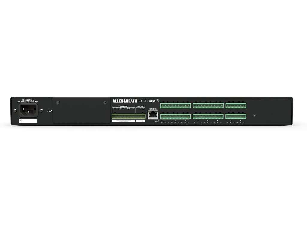 • Slot na volitelnou Dante kartu s 96kHz 64x64 (AES67 a DDM ready) nebo SLink kartu pro expandéry