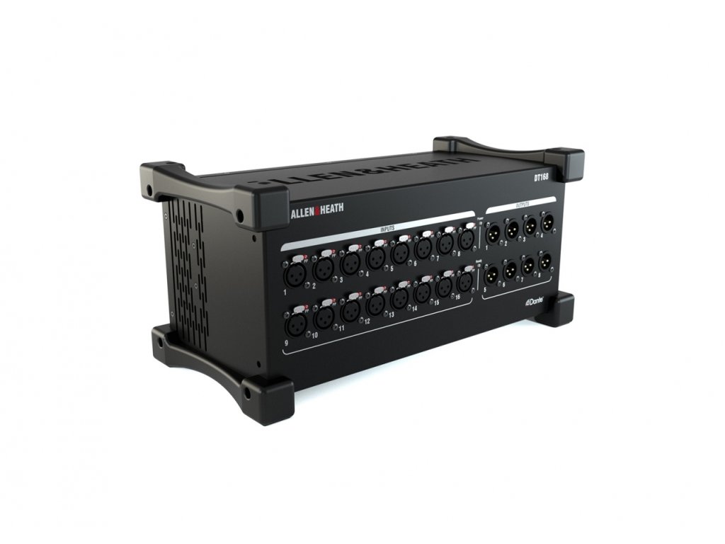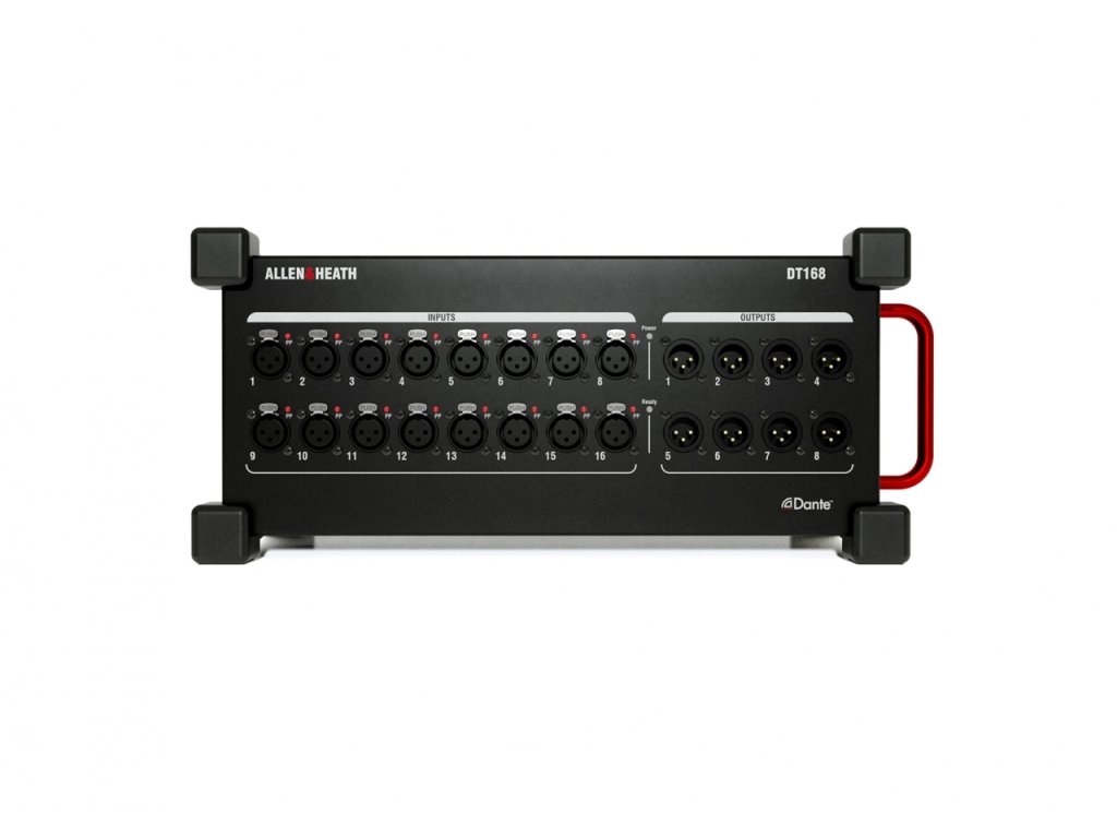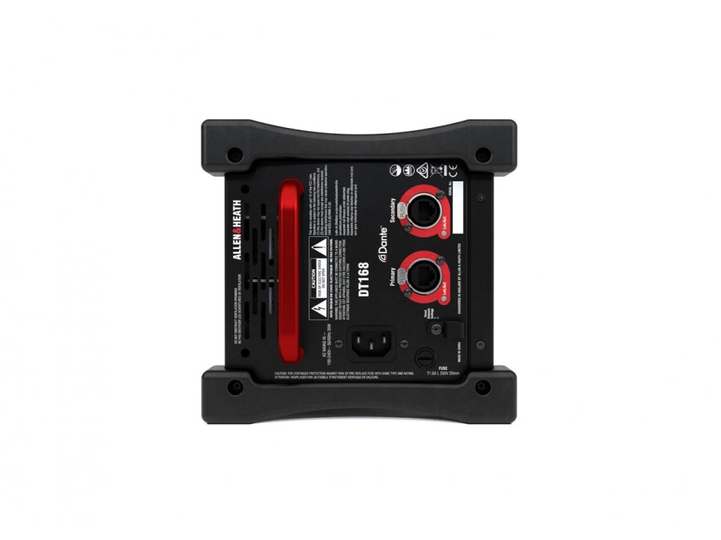 DT168 je osazen uznávanými předzesilovači Allen & Heath s 96kHz převodníky poskytujícími nejlepší zvukovou kvalitu přes Dante v dané kategorii. Primární a sekundární port Dante s konektory EtherCon umožňují řetězení přístrojů nebo redundantní konfiguraci.