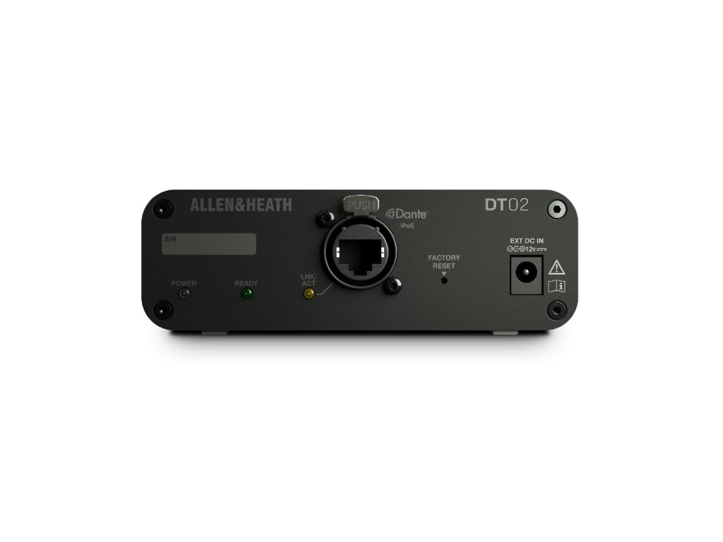 DT02 označuje kompaktní a hlavně dostupné 48kHz/96kHz Dante rozhraní, které přináší 2x XLR výstup tam, kde ho právě v rámci Dante ekosystému potřebujete. Toto šikovné zařízení využijete jak v pevných instalacích, tak v mobilním světě koncertů a dalších eventů. DT02 je kompatibilní se všemi mixážními pulty A&H a systémem AHM. DT02 pracuje také s Dante systémy od ostatních výrobců. Odolné hliníkové šasi lze díky volitelnému montážnímu příslušenství umístit do těsné blízkosti aktivních reproboxů či položit do racku. DT02 lze napájet externím síťovým zdrojem (DC 12V) nebo ethernetovým připojením (PoE). Je možné zvolit variantu DT02 s gumovými nožičkami a externím napájením nebo DT02-M, která obsahuje ucha pro montáž do racku bez externího zdroje.