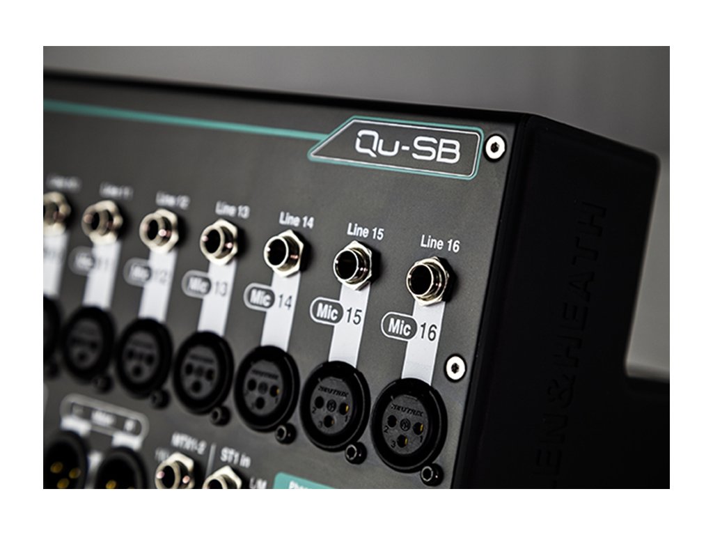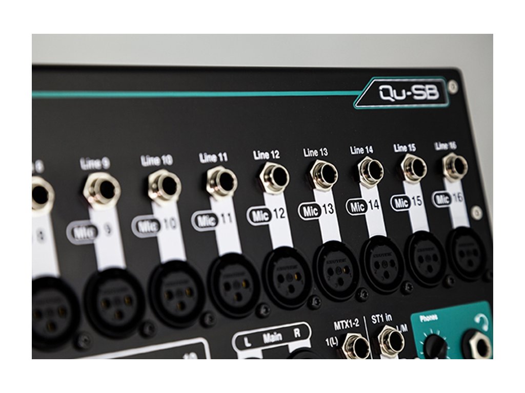 Qu-Sb je vybaven 18 vstupy a 14 výstupy a umožňuje rozšíření až na 32 vstupů a 24 výstupů pomocí kompatibilních AudioRacků (AR84, AR2412 a AB168). V kombinaci s osobním mixážním pultem ME-1 a aplikací pro personální monitoring Qu-You pro Android a iOS získáváme plnohodnotné a flexibilní řešení pro kapely a ostatní umělce na cestách i ve studiu.
