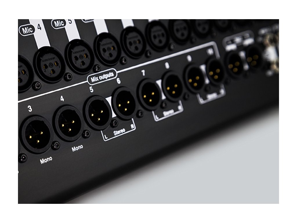 • 12 vestavěných výstupů (LR, Mono Mix 1-4, Stereo Mix 1-3)