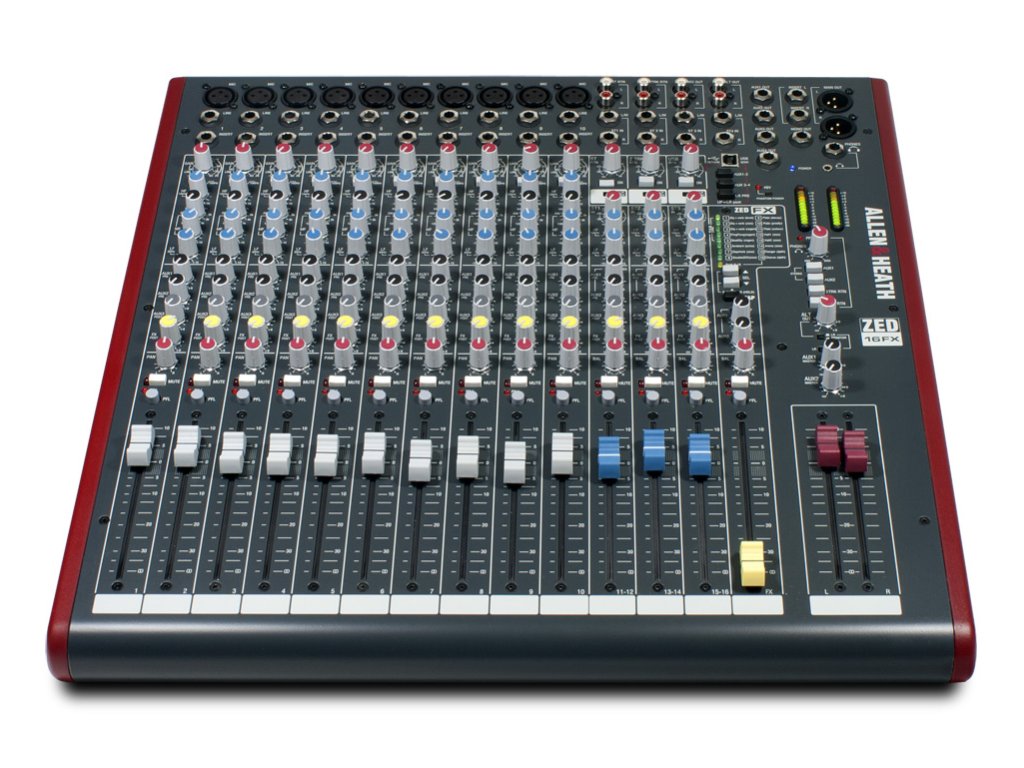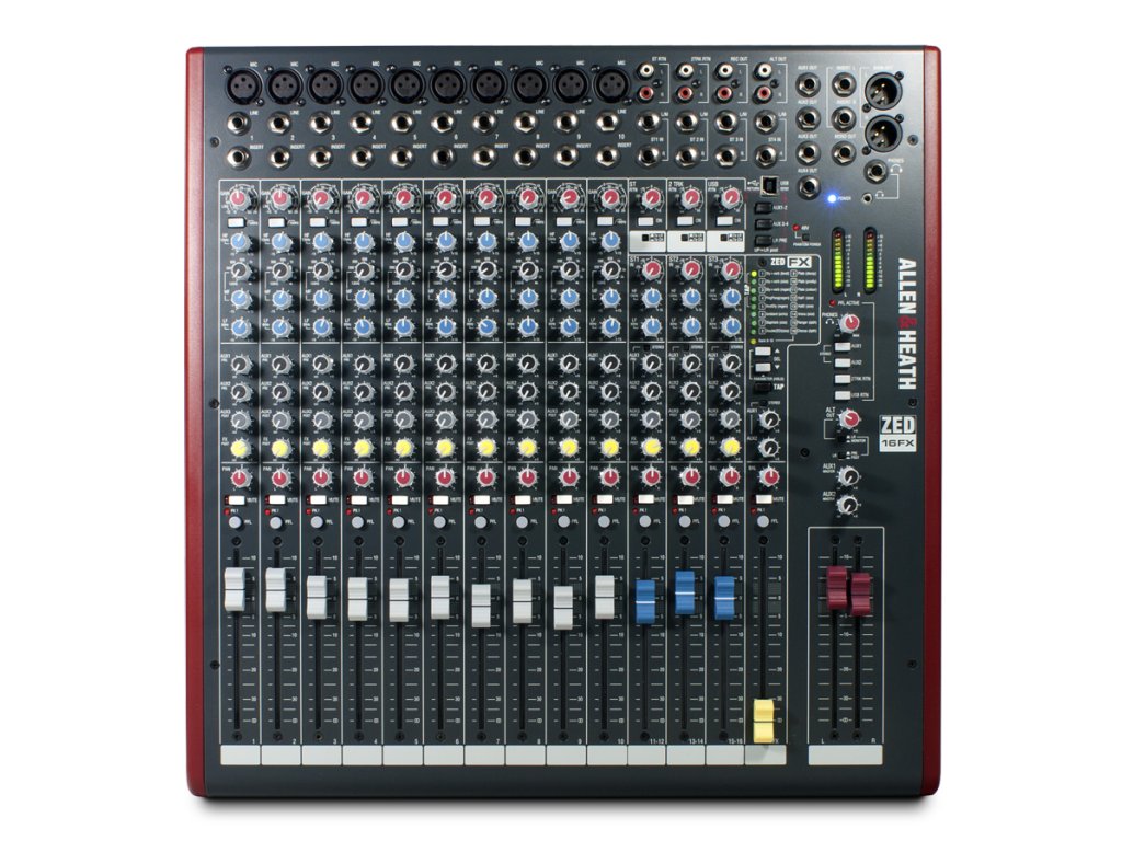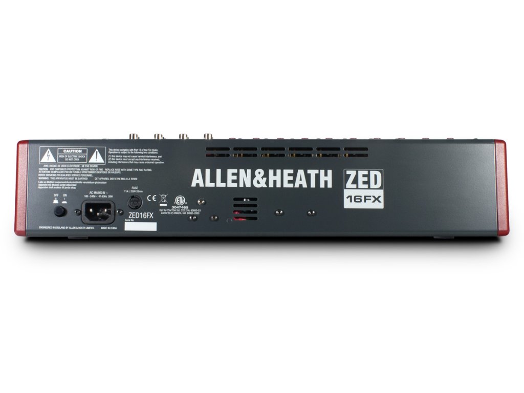 ZED 16FX je více účelový, kompaktní mixážní pult pro nahrávání a živé zvučení, který nabízí 10 mono kanálů, tři duální stereo kanály a kvalitní efektovou jednotku. ZED 16FX lze instalovat do standardního 19" racku.Všechny mono kanály obsahují předzesilovače Allen & Heath DuoPre, třípásmový ekvalizér MusiQ s laditelnou střední frekvencí, 3 pomocné sběrnice AUX, 100mm tahové poteniometry ALPS. Navíc ZED 16FX obsahuje USB rozhrani, které umožní využít mix pro stereo nahrávání nebo přidaní softwareových efektových pluginů do mixu. Otočné ovladače jsou bezpečne uchyceny do čelního panelu pomocí kovových matic. ZED 16FX obsahuje vysoce kvalitní komponenty NEUTRIK (konektory XLR a Jack)