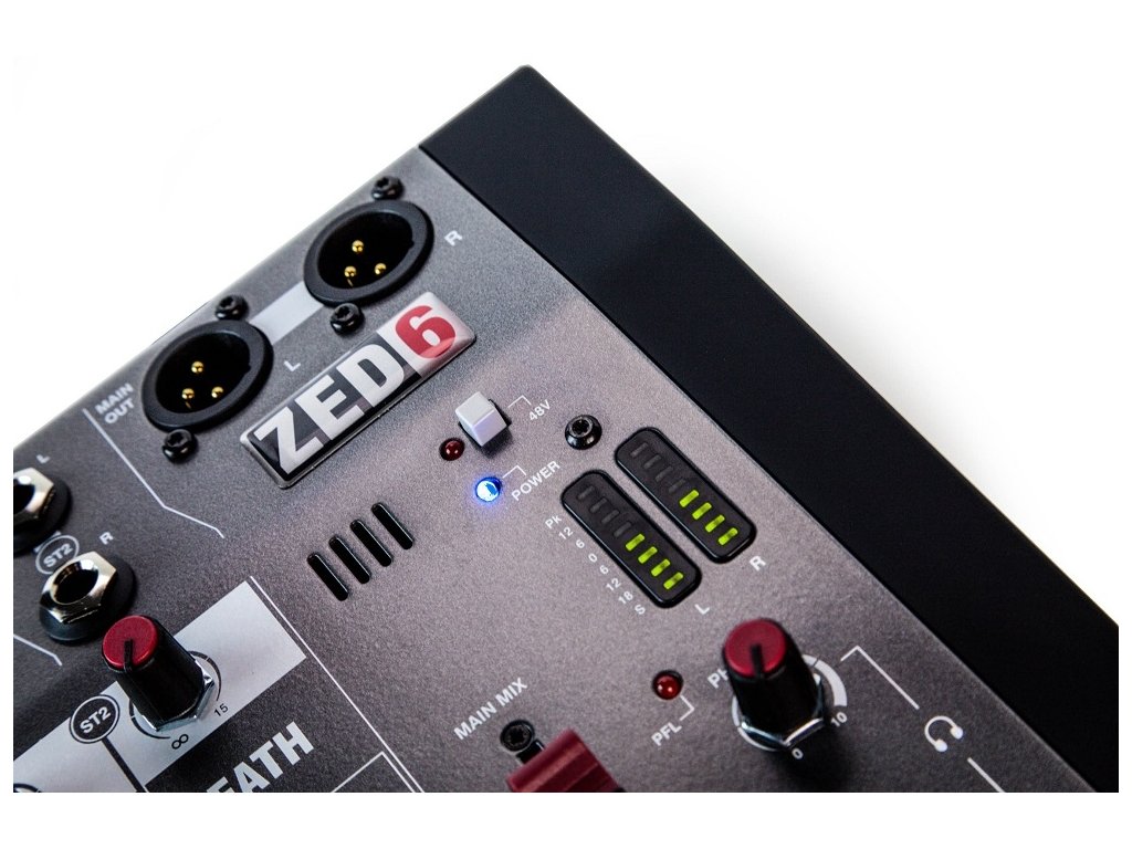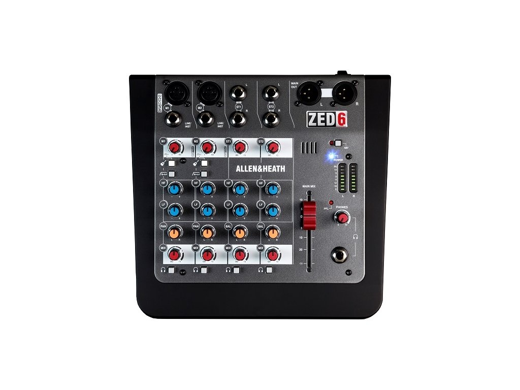 ZED-6 byl navržen pro hudebníky, hledající renomovanou kvalitu výrobků Allen &Heath v kompaktním a přenosném formátu. Nezáleží na tom, jestli tvoříte v domácím prostředí a potřebujete nahrát záznam pro sdílení na SoundCloud či YouTube, chystáte se na koncert nebo volně improvizujete. ZED-6 je mnohostranný společník pro každý moment Vaší kreativní cesty. Pomocí nových GSPre preampů, postavených na základě ctěného studiového pultu GS-R24, přináší nový ZED-6 vysoký headroom a nízkou úroveň šumu s analogovou hloubkou a nádechem. Pro všechny hráče na kytaru jsou zde navíc připraveny linkové vstupy s vysokou impedancí, odstraňující nutnost pro hudebníky přenášet DI box.