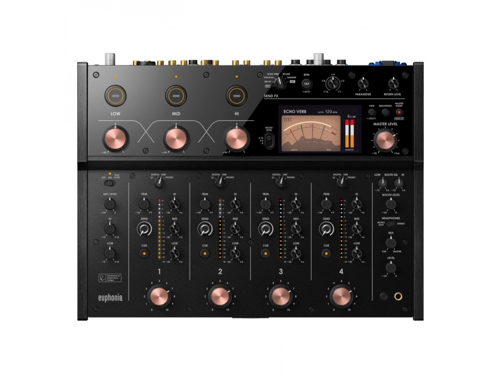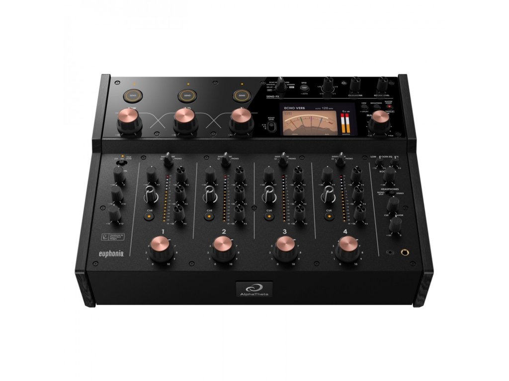 AlphaTheta - značka založena všem dobře známou společností Pioneer DJ představila nový 4 - kanálový rotační DJ mixážní pult Euphonia, který vytváří jedinečný euforický zvuk kombinací čistého digitálního a bohatostí analogového zvuku. K docílení co nejkvalitnějšího a nejvěrohodnějšího zvuku používá Euphonia vysoce kvalitní 32bitové A/D D/A převodníky a pracuje na samplovací frekvenci 96 kHz / 64 bit v rámci zpracování mixu a DSP.