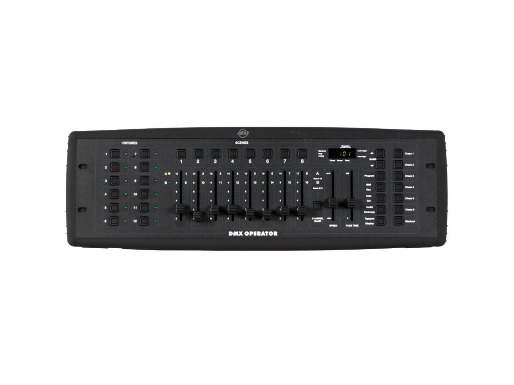 American Dj - ADJ DMX Operator 1 • DMX kontroler • až 240 programovatelných scén • 192 DMX kanálů • 12 Individuálních FIXTURE kanálů • MIDI • snadné použití • rozměry: 133 x 483 x 64 mm • hmotnost: 2,3 kg