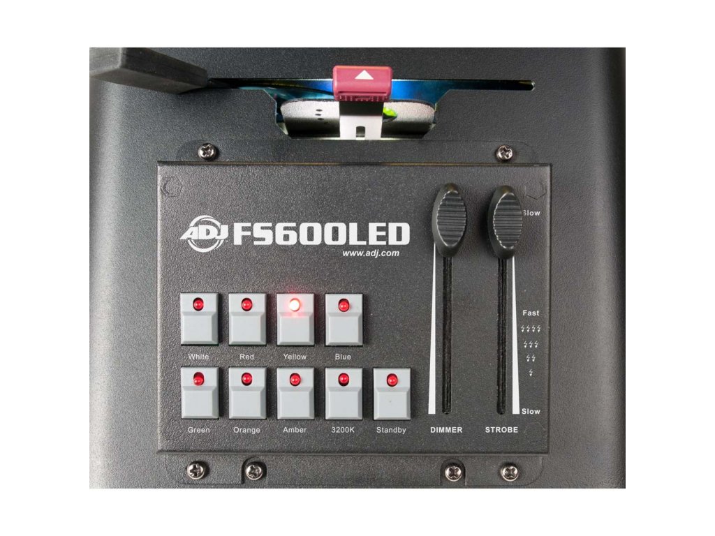 FS600LED je moderní 60W LED Follow Spot. Využívá jasný 60W LED zdroj, má 8 barev, proměnnou rychlost stroba a možnost setmění. Mezi další vlastnosti patří například: nastavitelná irisová clona, závěrka pro manuální framing a 3pinový a 5pinový DMX protokol. Těleso má příkon pouhých 60 W a nezahřívá se.