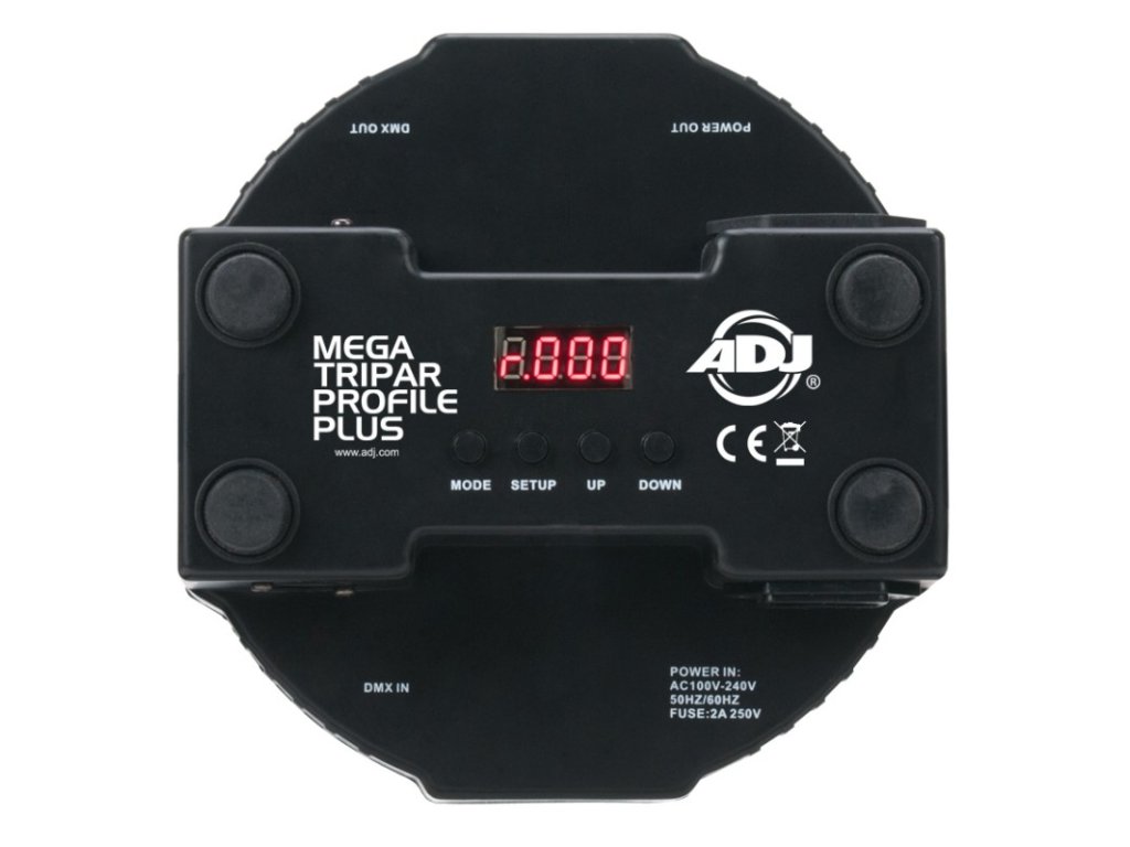 Mega Tripar Profile Plus výrobce ADJ je nový kompaktní, nízkoprofilový PAR reflektor určený k osvětlování pódií a dalších objektů. Představuje vhodnou volbu pro vnášení jasných barvev a zdatně pracuje s atmosférou na libovolné párty. Těleso využívá jedinečný „sit-flat“ design, takže může stát přímo na zemi nebo být uvnitř nosné konstrukce bez nůžkového držáku. Napájecí konektory a DMX vstupy a výstupy můžeme nalézt na boční straně zařízení.