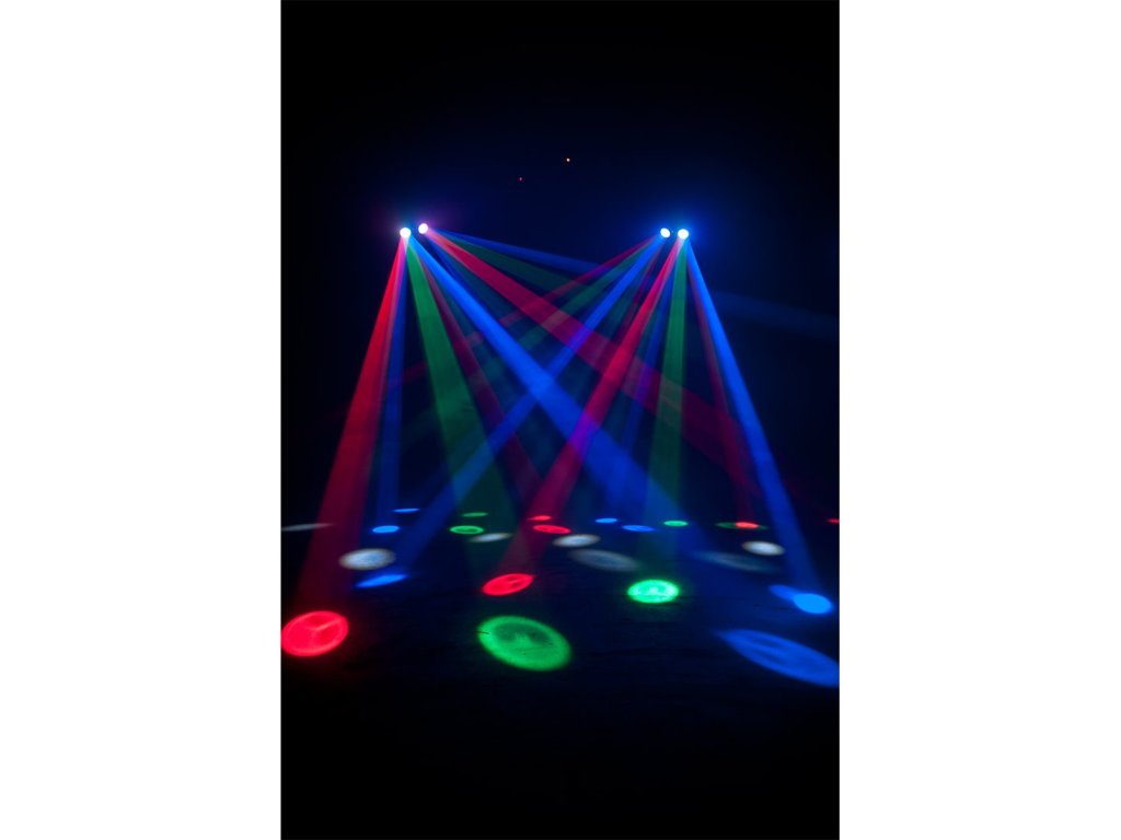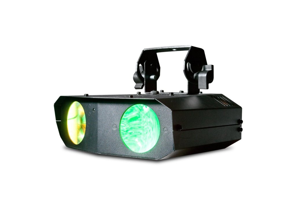 American DJ - Monster Duo • duální LED Moonflower efekt • 20x 1W RGBWA LED (4 červené, 4 zelené, 4 modré, 4 bílé a 4 jantarové) • vyzařovací úhel: 45 stupňů • dimmer: 0-100% • 3 provozní režimy: Sound Active/manuální režim/DMX ovládání • 1 DMX kanál • 12 vestavěných světelných show • 4-tlačítkový LCD displej • propojení 3-pinovým XLR kabelem • bezpečnostní oko na zadní straně