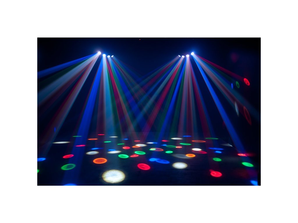 American DJ - Monster Quad • LED moonflower efekt se čtyřmi čočkami • 25x 1W RGBWA LED • vyzařovací úhel: 93 stupňů • samostatný provoz nebo konfigurace Master/Slave • 3 provozní režimy: Sound Active/manuální režim/DMX ovládání • 1 DMX kanál • 12 vestavěných světelných show • kompatibilní s dálkovým ovladačem ADJ UC-IR • 4-tlačítkový LCD displej • propojení 3-pinovým XLR kabelem