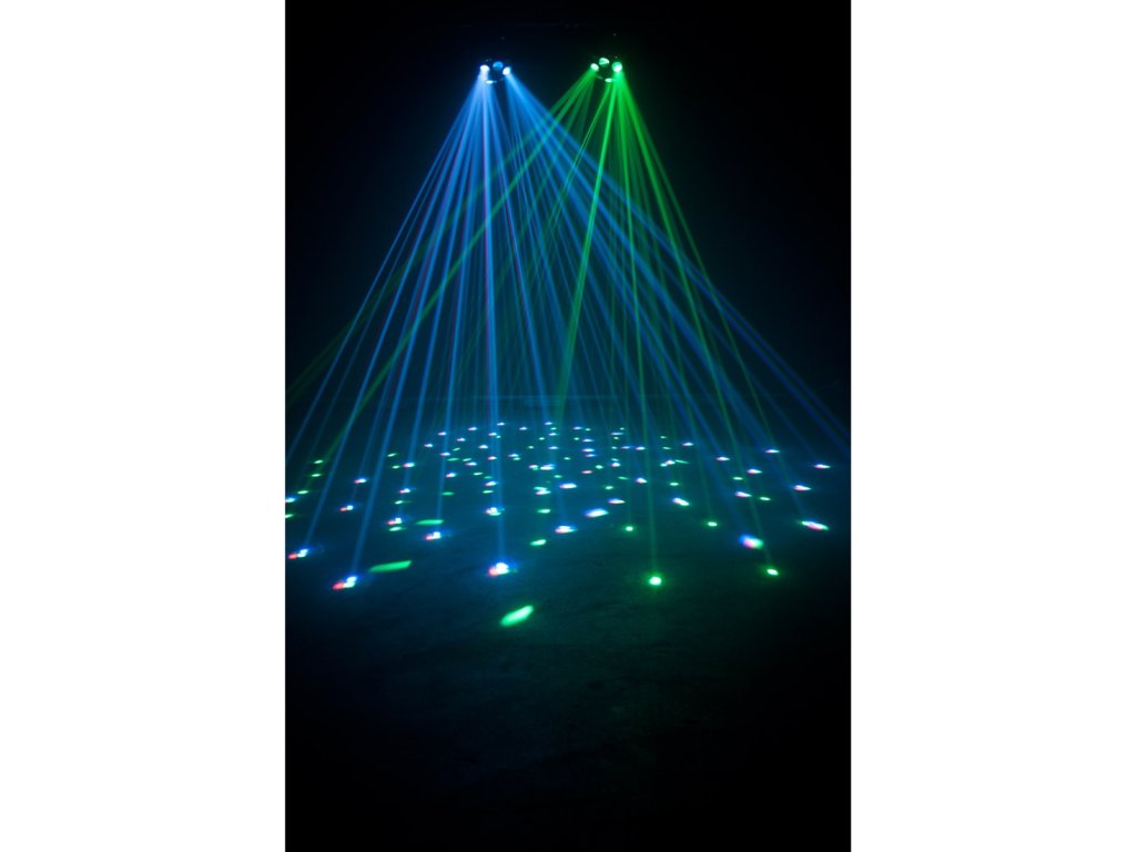 American DJ - Quad Phase Hp • moonflower efekt • světelný zdroj: 32W RGBW LED 4v1 • 4 DMX kanály • provozní režimy: Sound Active, Master/Slave nebo DMX-512 • úhel vyzařování: 65° • strobo/pulzující LED efekt • elektronické stmívání: 0 - 100% • rozměry: 312 x 198 x 279 (mm) • hmotnost: 4 kg