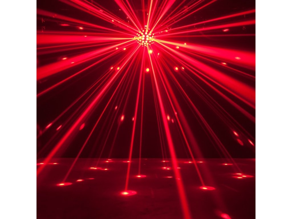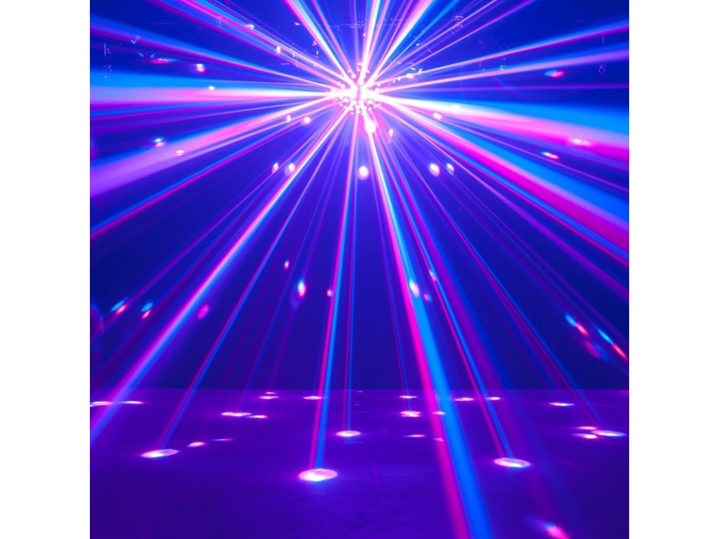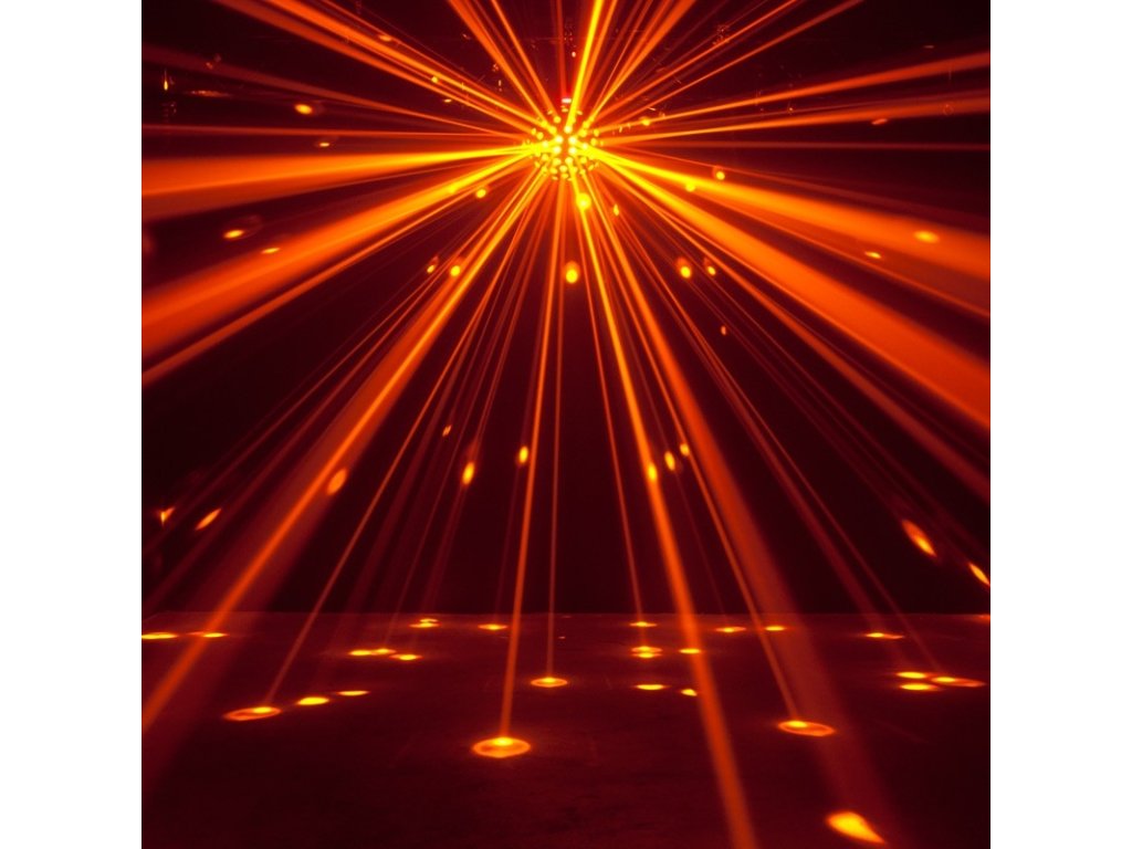 Starburst pracuje jako sférický LED efekt, jehož rotace je řízena pomocí DMX protokolu a integrovaného mikrofonu. Generuje ostré, vícebarevné paprskové efekty pomocí světelného zdroje tvořeného pěti 15W HEX LED (RGBWYP) diodami.
