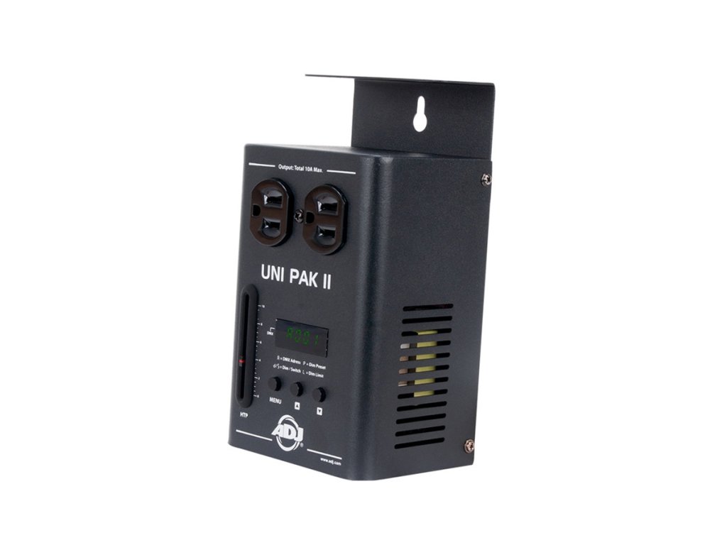UNI PAK MKII od firmy American Dj využívá standardní protokol DMX512 pro absolutní kontrolu nad stmíváním vašich světel. Na stmívači je potenciometr - fader pro ruční řízení. Funguje jako mezičlánek mezi DMX pultem a světlem jako stmívací jednotka. ADJ UNI PAK MKI je výbornou volbou pro pevné instalace jako jsou bary, cluby stage a nebo inscenace, zároveň se ale osvědčí i pro uživatele na cestách. Světlo pro rychlé ovládání je vybaveno LED displayem