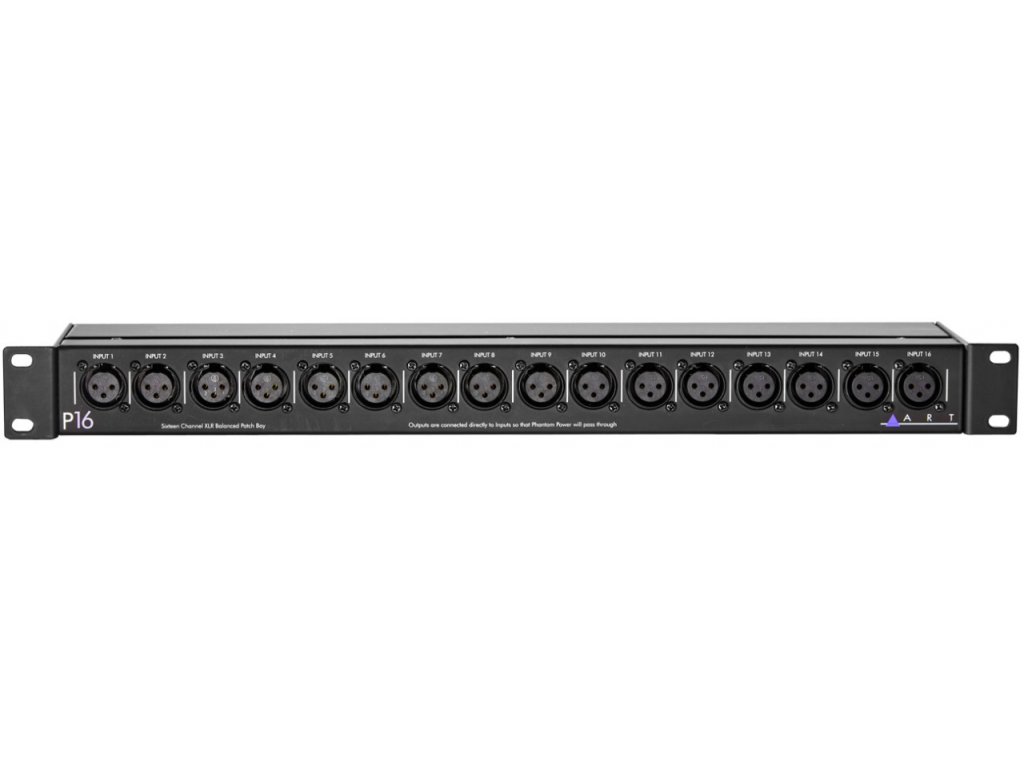 ART P16 • 16ti kanálový symetrický XLR M/F patch bay • 16 vstupů na přední straně (samice) • pevné kovové šasí • 1U rack • kovová konstrukce • rozměry 44 x 483 x 89 (mm) • hmotnost 1,4 kg