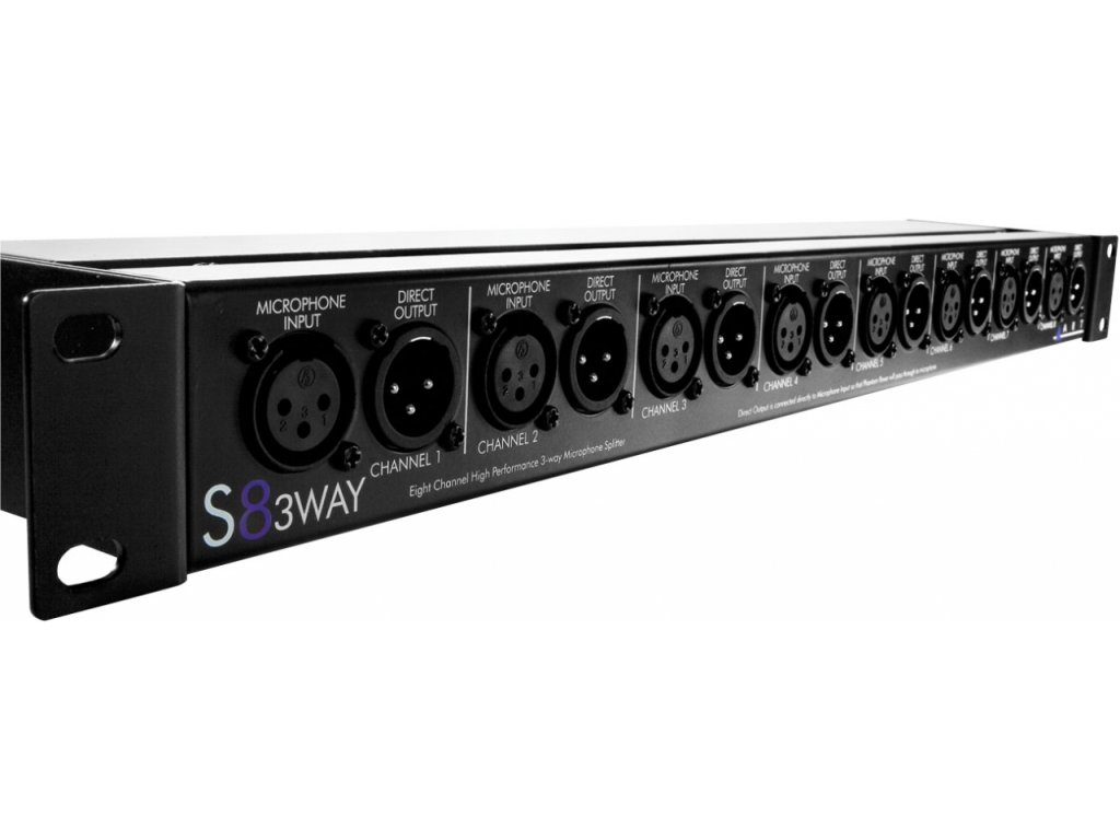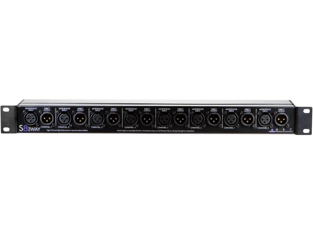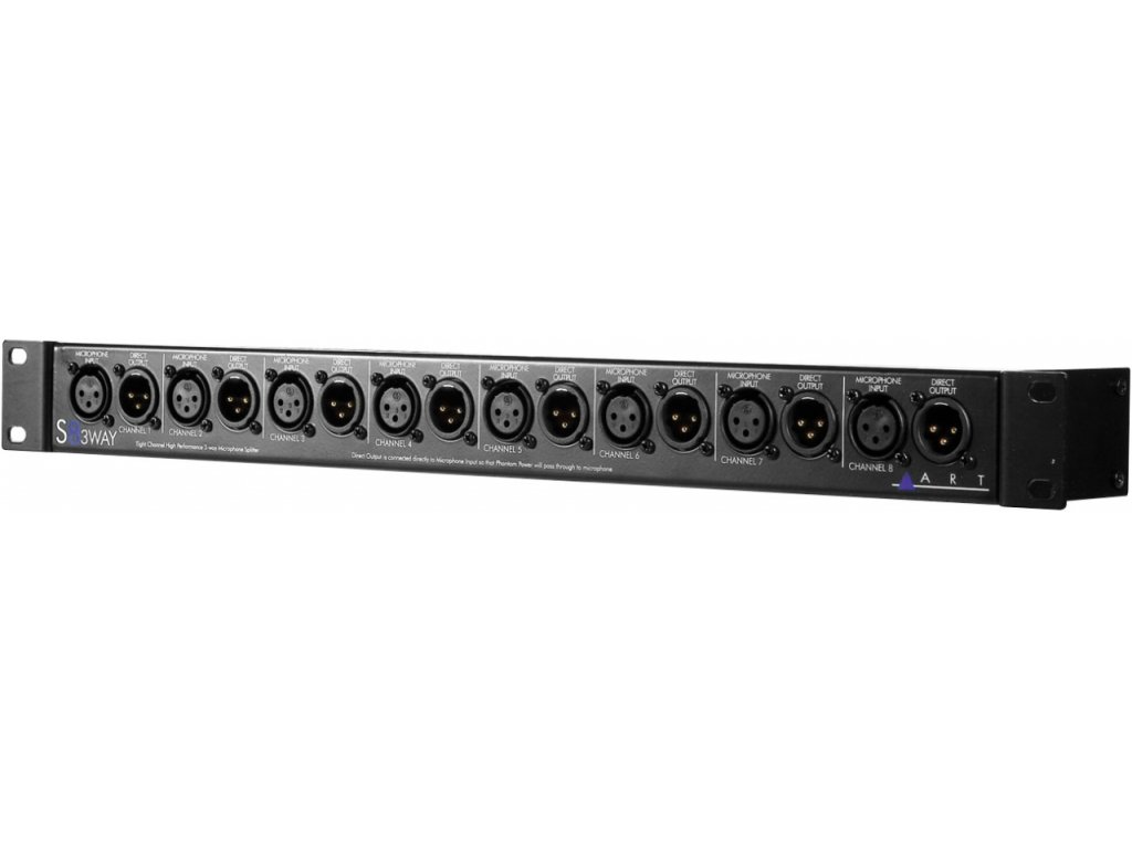 ART - S8-3Way • osmikanálový pasivní mikrofonní splitter • 24 symetrických výstupů • galvanicky odděleno • vstup a výstup XLR • 1U rack • hmotnost: 1,7 kg
