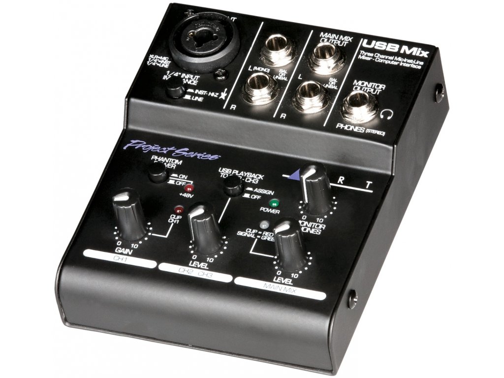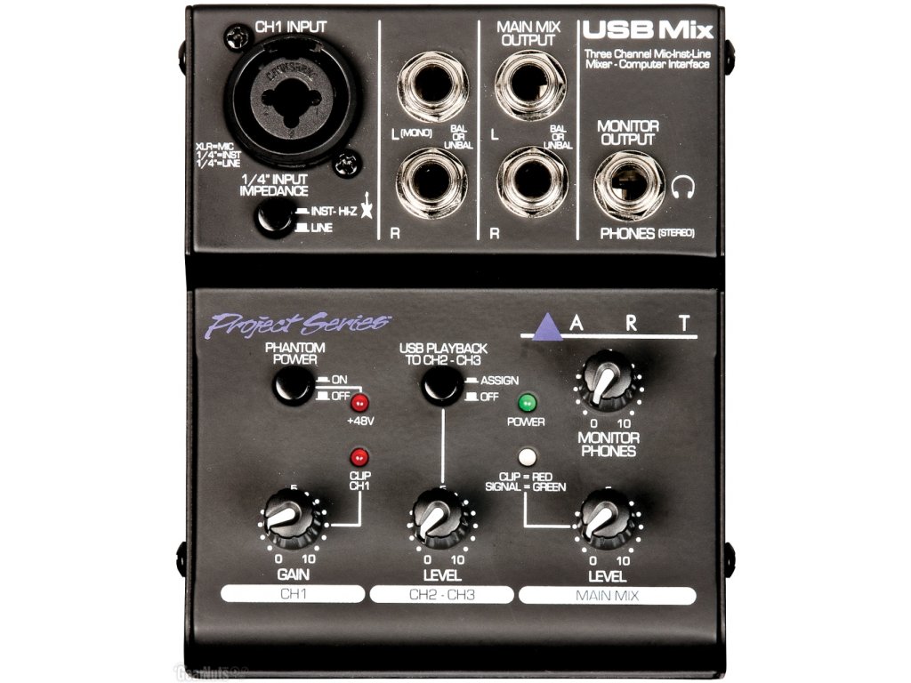 ART USB Mix • 3-kanálový USB mix • mikrofon/instrument In • stereo Line/USB In • Main-Monitor-USB Out • fantomové napájení • rozměry 41 x 101 x 121 (mm) • hmotnost 0.5 kg
