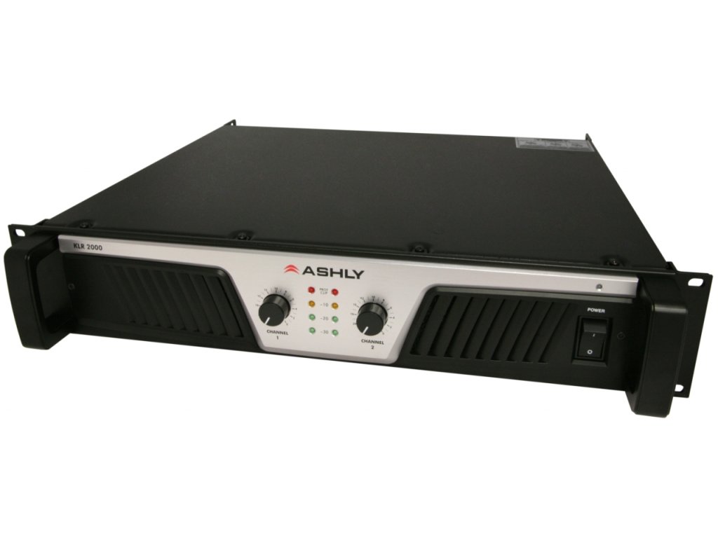 KLR-2000 Dvoukanálové zesilovače Ashly řady KLR mají díky využití nejmodernějších technologií vysoký výkon, vysokou účinnost a nízkou váhu. Nabízí tak profesionální vlastnosti i kvalitu za velmi přijatelnou cenu. Zesilovače KLR jsou konstruovány pro spolehlivý provoz s dokonalým zvukem za všech okolností, ať už jde o pevnou instalaci či mobilní systém. S rozsahem výkonů od 1000 do 2500 wattů na kanál do 2 ohmů (20Hz-20kHz, 1% THD) jsou KLR-2000, KLR-3200, KLR-4000 a KLR-5000 perfektní volbou pro široký rozsah ozvučovacích aplikací. Všechny čtyři modely jsou konstruovány tak, aby mohly do 8, 4 i 2 ohmů dlouhodobě poskytovat vysoký výkon s vynikajícími zvukovými vlastnostmi a touringovou spolehlivostí. Za nízkou váhu i výborný zvuk vděčí modernímu spínanému zdroji. Zesilovače mají pevné šasí s výškou 2U. Model KLR-2000 pracuje ve třídě AB, modely KLR-3200, KLR-4000 a KLR-5000 pracují ve dvoustupňové třídě H. Ochranné obvody hlídají výstupní proud, stejnosměrné napětí na výstupu, teplotu a omezují náběhový proud. Čelní panel obsahuje vstupní potenciometry, kontrolky LED pro úroveň signálu, přebuzení a aktivaci ochran, síťový vypínač, síťová kontrolka a vstupní ventilační otvory s odnímatelnými prachovými filtry. Na zadním panelu jsou vstupy (Combo XLR a 1/4" TRS plus svorkovnice Euroblock), výstupní konektory Neutrik Speakon, vypínače limitéru, třípolohové přepínače filtru HPF (OFF, 30Hz, 50Hz), třípolohový přepínač zisku (1V, 32dB a 26dB), třípolohový přepínač provozu (bridged, stereo, parallel mono), výstupní ventilační otvory a pevně připojený síťový kabel.
