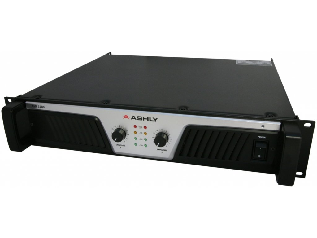 ASHLY KLR-3200 • zesilovač • 2x 650W / 8ohm, 2x 1100W / 4ohm, 2x 1600W / 2ohm, 3200W / 4ohm bridge • třída H • symetrické vstupy s konektory Combo XLR/ 1/4" TRS a 3-pin Euroblock • výstupní konektory Neutrik Speakon • rozměry 482x88x407 (mm), 2U • hmotnost 10,9 kg