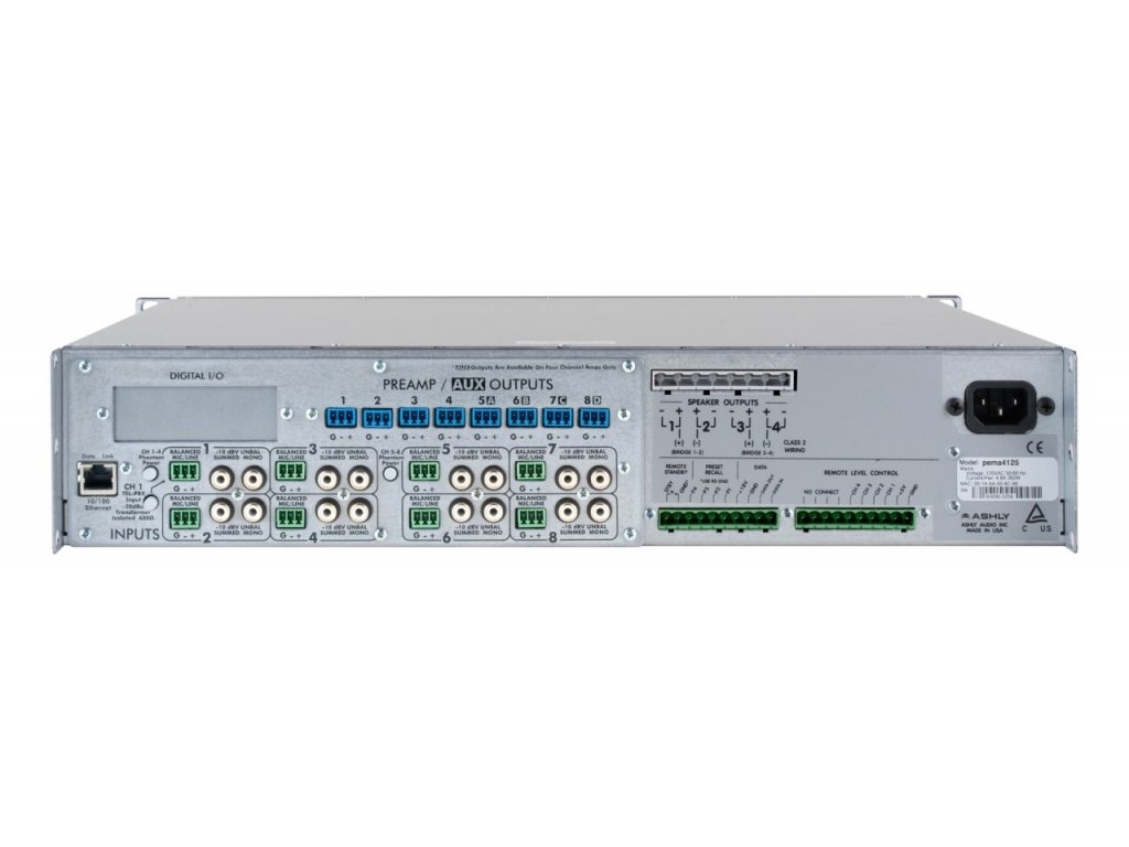 zesilovač, 4x 125W / 100V, class D, 8x8 DSP, 9.53kg, 2UDodatočné parametre