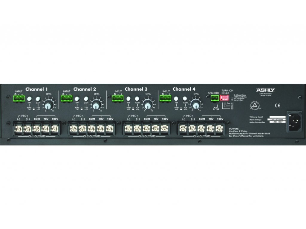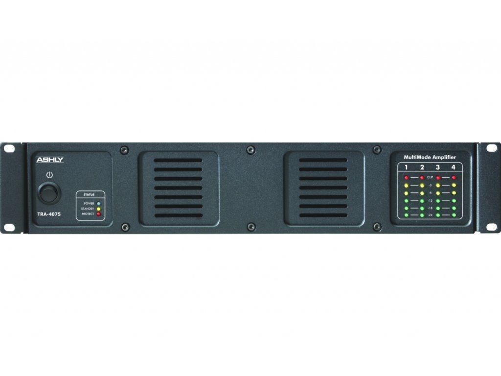 Ashly TRA - 4075 • 4 kanálový zesilovač • 4x 40W / 8ohm • 4x 75W / 4ohm • 4x 75W / 25-70-100V • přepínatelný High-Z nebo Low-Z výstupu pro maximální flexibilitu • pasivní chlazení • LED indikace • vstupní/výstupní konektory Euroblock • dálkové řízení zapnutí/vypnutí • vnitřně přepínatelné 120V/240V napájení (interní) • třída D • frekvenční odezva: 20 Hz - 20 kHz, + / - 1.0 dB • extrémně nízká hlučnost • rozměry 483 x 89 x 279.4 (mm), 2U • hmotnost 13,4 kg