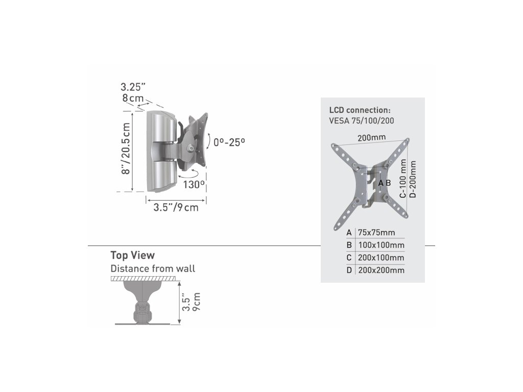 nástěnný držák pro LED/LCD/plasma, max. zatížení 25kg, vzdálenost od stěny 10,2cm, hmotnost 1,4kg, vhodné pro montážní otvory až do 400x400mm (VESA & Non VESA), kompatibilní s Ultra Slim obrazovkami až do 56 palců / 142 cmDodatočné parametre