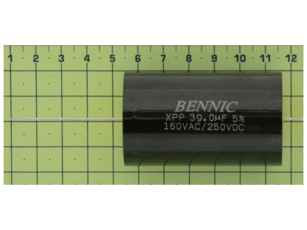 svitkový kondenzátor s metalizovaným polypropylenovým dielektrikem, tolerance 5%, axiální uspořádání (vývody na obou stranách), průměr 37mm, délka 61mmDodatočné parametre