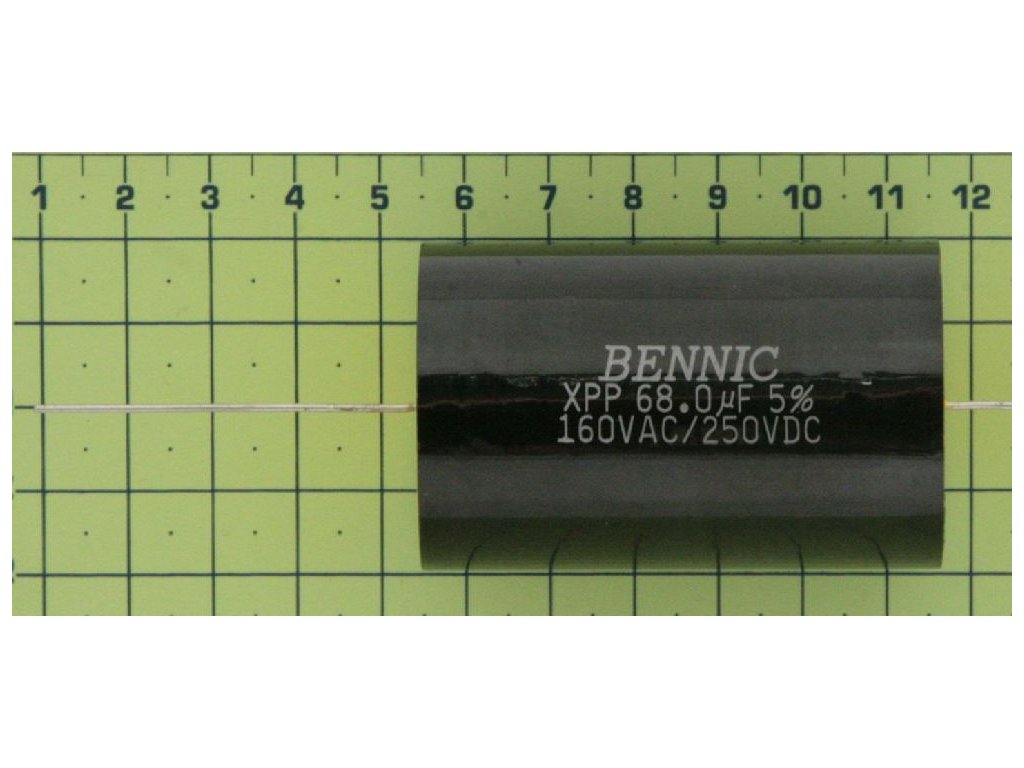 svitkový kondenzátor s metalizovaným polypropylenovým dielektrikem, tolerance 5%, axiální uspořádání (vývody na obou stranách), průměr 39mm, délka 60mmDodatočné parametre
