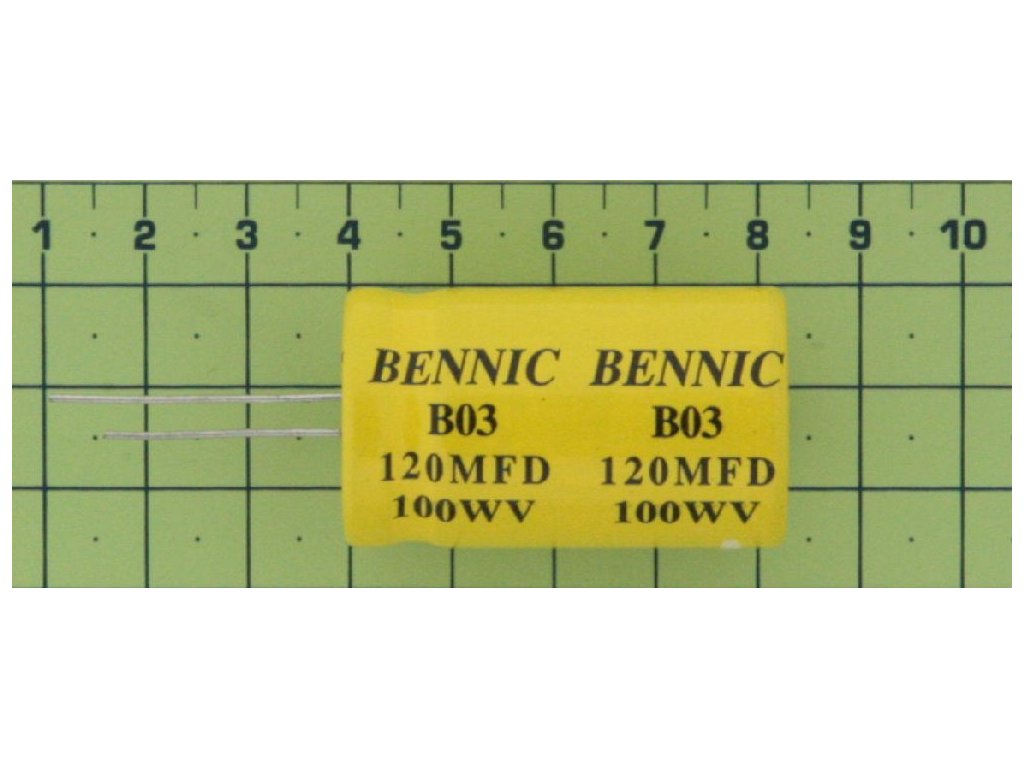 bipolární elektrolytický kondenzátor 120M / 100V, tolerance 5%, radiální (vývody na jedné straně), průměr 25 mm, délka 43 mmDodatočné parametre