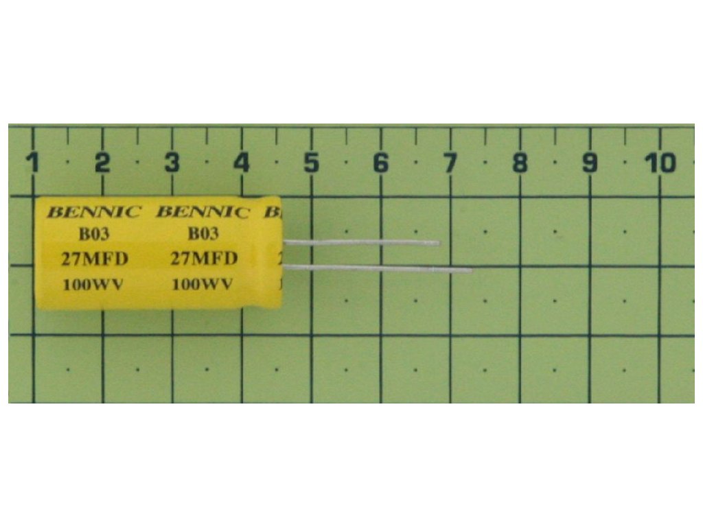 bipolární elektrolytický kondenzátor 27M / 100V, tolerance 5%, radiální (vývody na jedné straně), průměr 16 mm, délka 35 mmDodatočné parametre