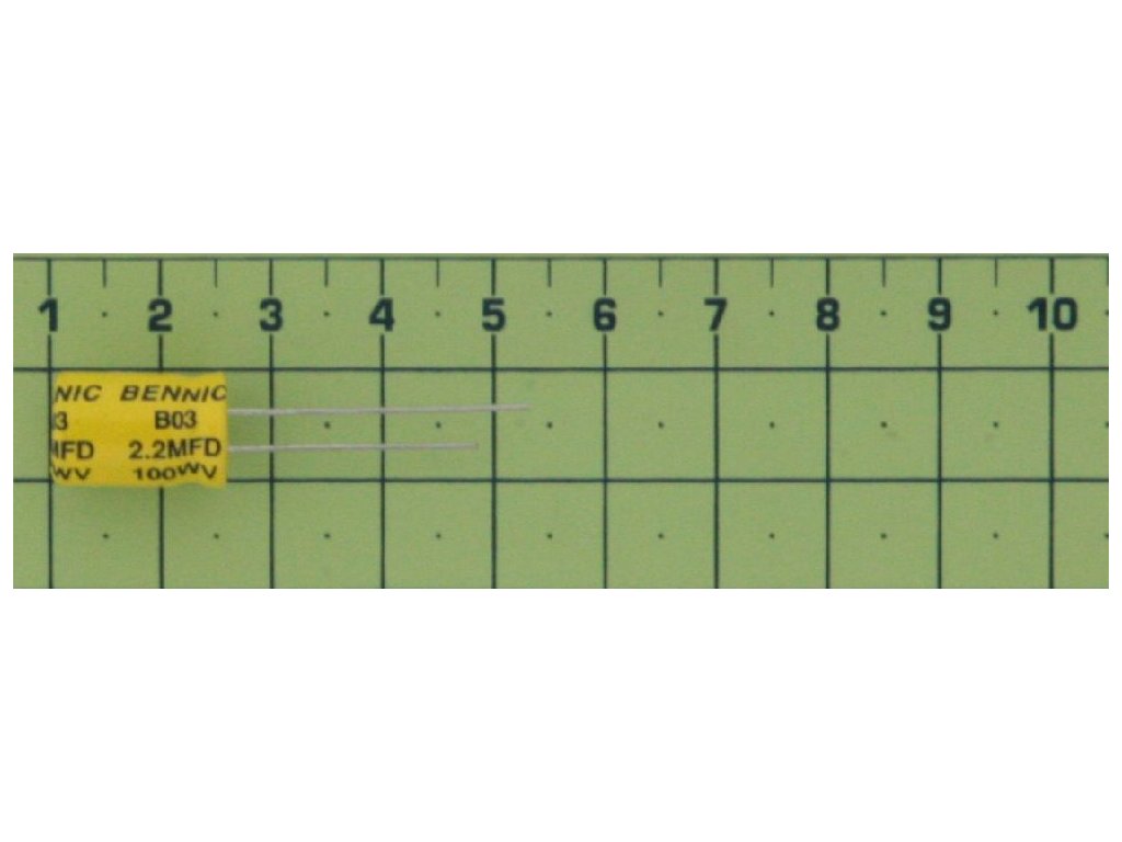 bipolární elektrolytický kondenzátor 2M2 / 100V, tolerance 5%, radiální (vývody na jedné straně), průměr 10 mm, délka 15 mmDodatočné parametre