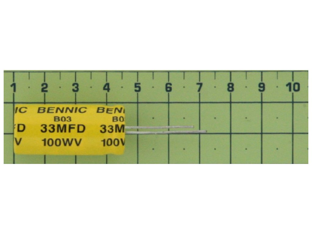 bipolární elektrolytický kondenzátor 33M / 100V, tolerance 5%, radiální (vývody na jedné straně), průměr 16 mm, délka 35 mmDodatočné parametre
