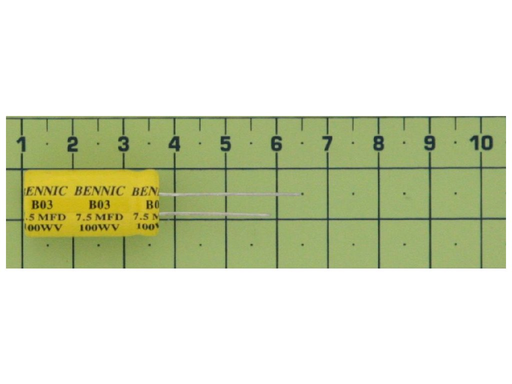 bipolární elektrolytický kondenzátor 7M5 / 100V, tolerance 5%, radiální (vývody na jedné straně), průměr 13 mm, délka 26 mmDodatočné parametre