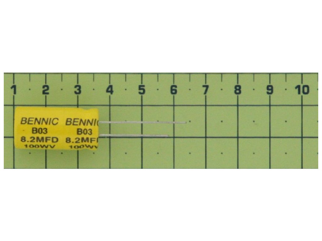bipolární elektrolytický kondenzátor 8M2 / 100V, tolerance 5%, radiální (vývody na jedné straně), průměr 13 mm, délka 26 mmDodatočné parametre