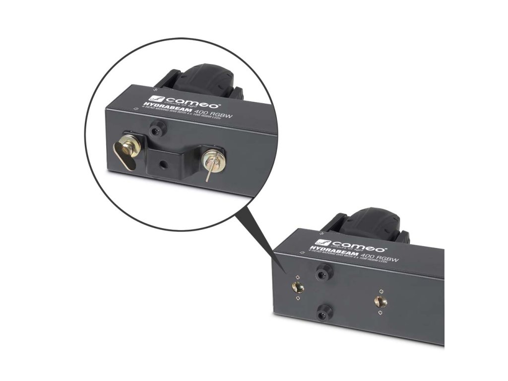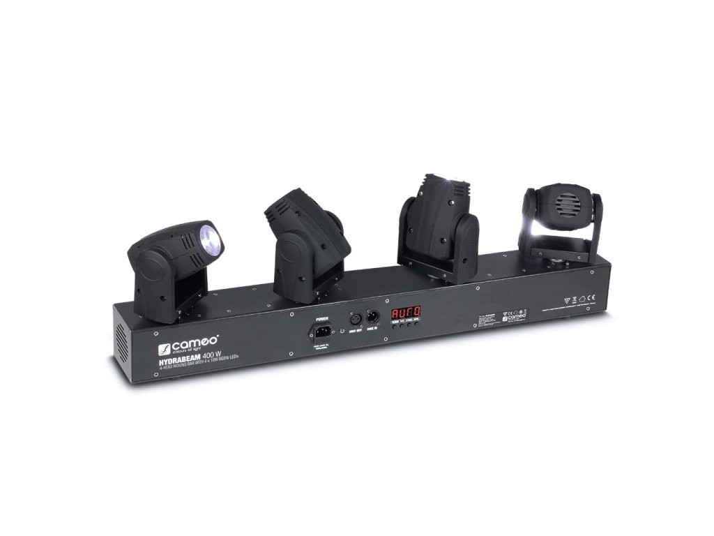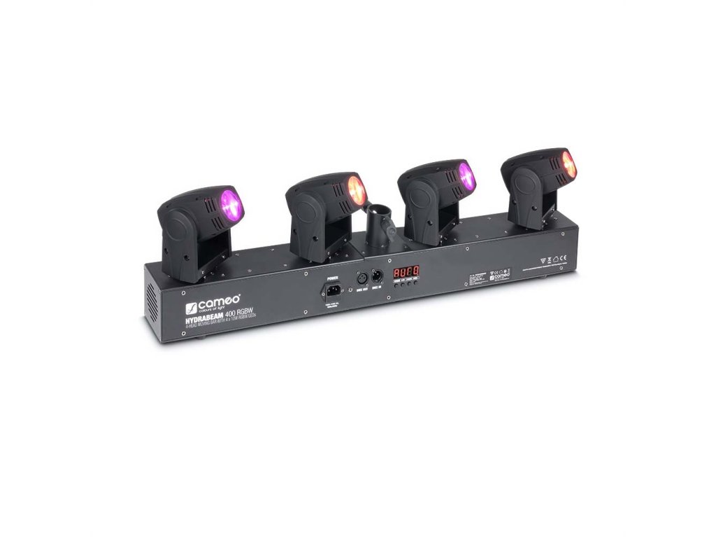 Cameo HydraBeam 400 RGBW je světelný set osazený čtyřmi nezávisle ovladatelnými pohyblivými hlavami. Jsou vybaveny silnými 10 W CREE RGBW Quad-LED, které společně vytváří úzký vyzařovací úhel 4,5° a intenzitu osvětlení 84 000 lux. Pohyb hlav je možný po 540° po horizontální ose a 270° vertikálně, navíc je celý systém chlazený tichým ventilátorem.