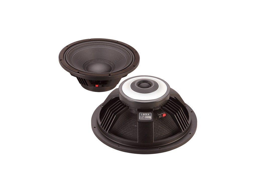 reproduktor 18", 1000W, 96,5dB, 25-2000Hz, X-max 8,0mmThe 18SX is a low frequency loudspeaker designed for use as a low bass or subwoofer component in bass-reflex or bandpass configurations. Achieving a remarkable 25 Hz lower bandwidth extension and a 96.5 dB sensitivity, the 18SX provides clean, linear frequency reproduction at high power levels.