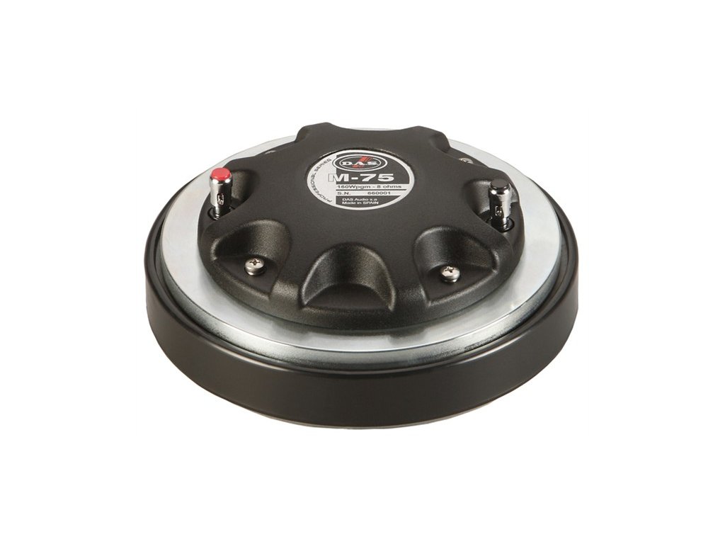 driver 1.5", 80W, 108dB, 1000-20000HzThe M-75 compression driver designed for use in applications where high SPL and low distortion are required. A pure titanium diaphragm featuring a 75 mm copper-clad, aluminium flat-wire voice coil yields high sensitivity, low distortion and extended frequency response. Each motor system has a copper shorting ring surrounding the pole piece which effectively reduces eddy current induced distortion with the added benefit of increasing the very high frequency output by reducing the inductive rise of the voice coil.