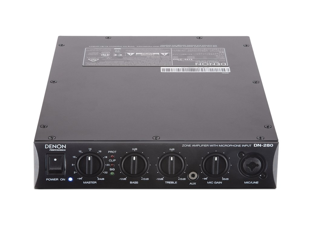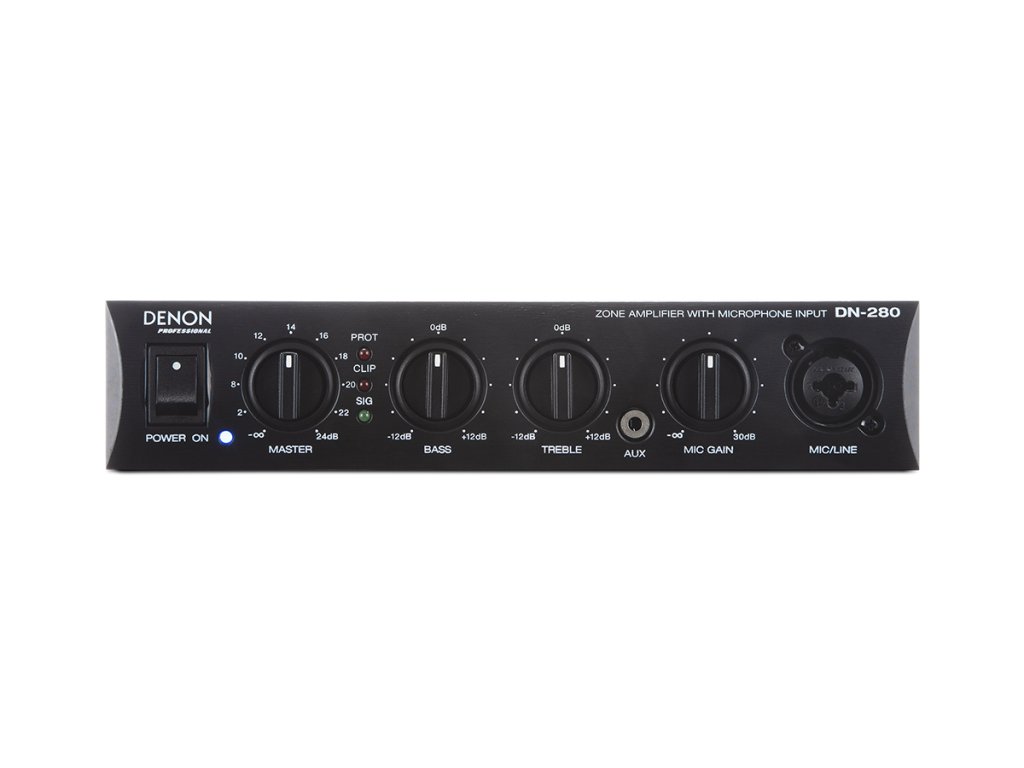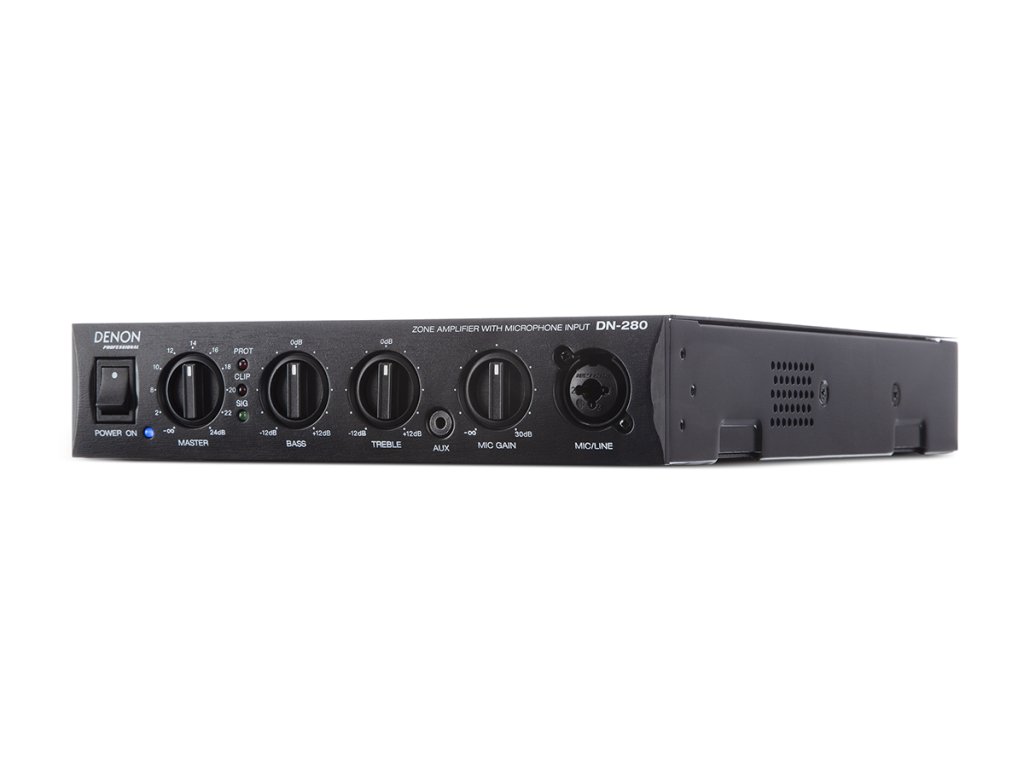 Zesilovač má poloviční rackový rozměr a může napájet 4 ohmové, 70 V nebo 100 V reproduktory. Při minimálním zahřívání poskytuje výkon 60 W s vynikajícím poměrem signál-šum > 95 dB a se zkreslením < 0,1 %, což zajišťuje extrémně čistý zvuk za všech podmínek. DN-280 má vestavěnou ochranu proti zkratu a na předním panelu LED indikaci přítomnosti signálu, clipu a aktivní tepelné ochrany.