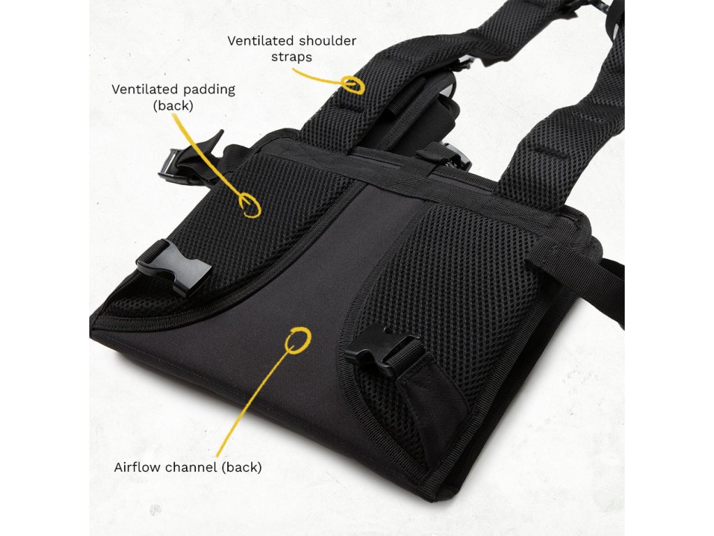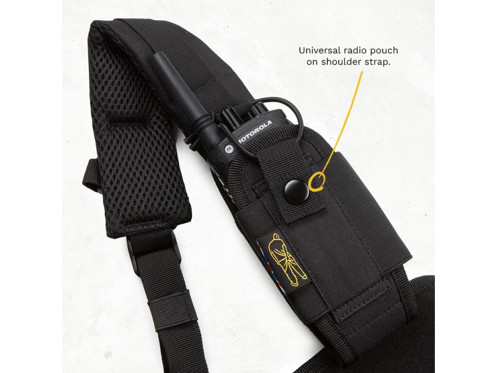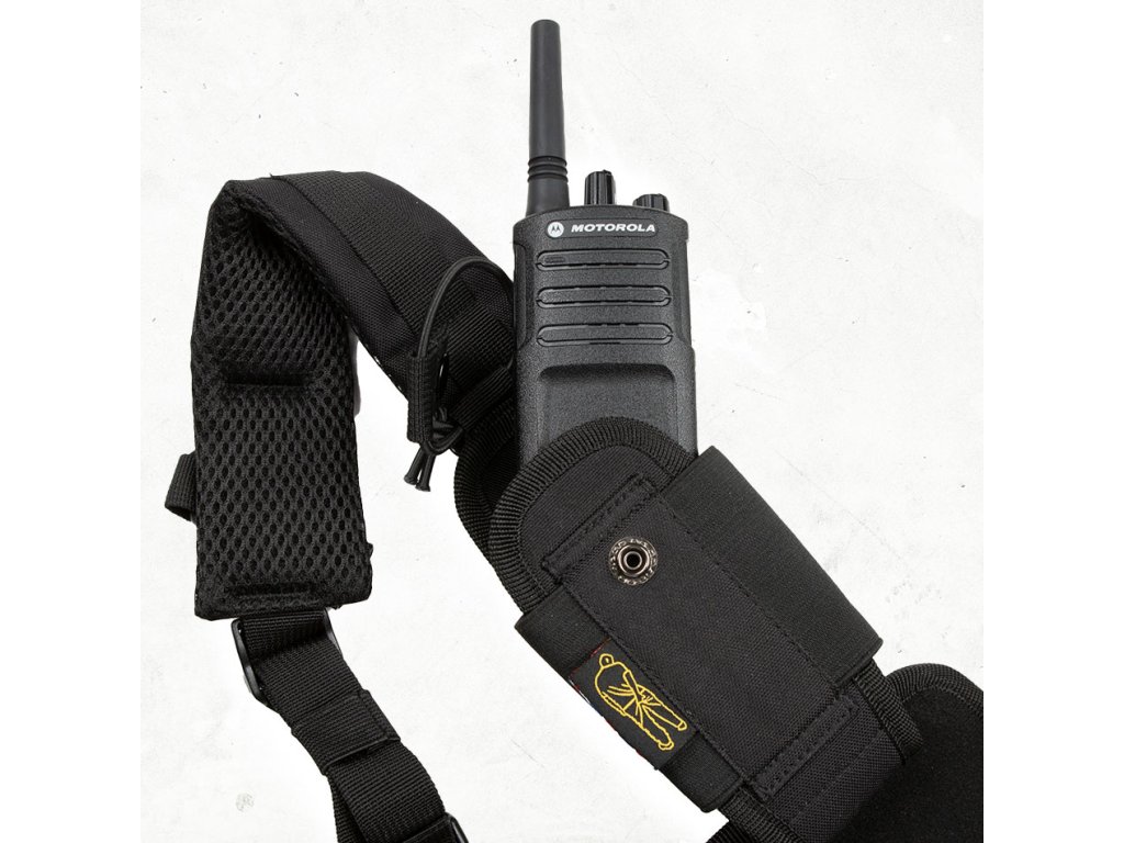 • Integrované univerzální pouzdro na vysílačku, umístěné na ramenním popruhu.