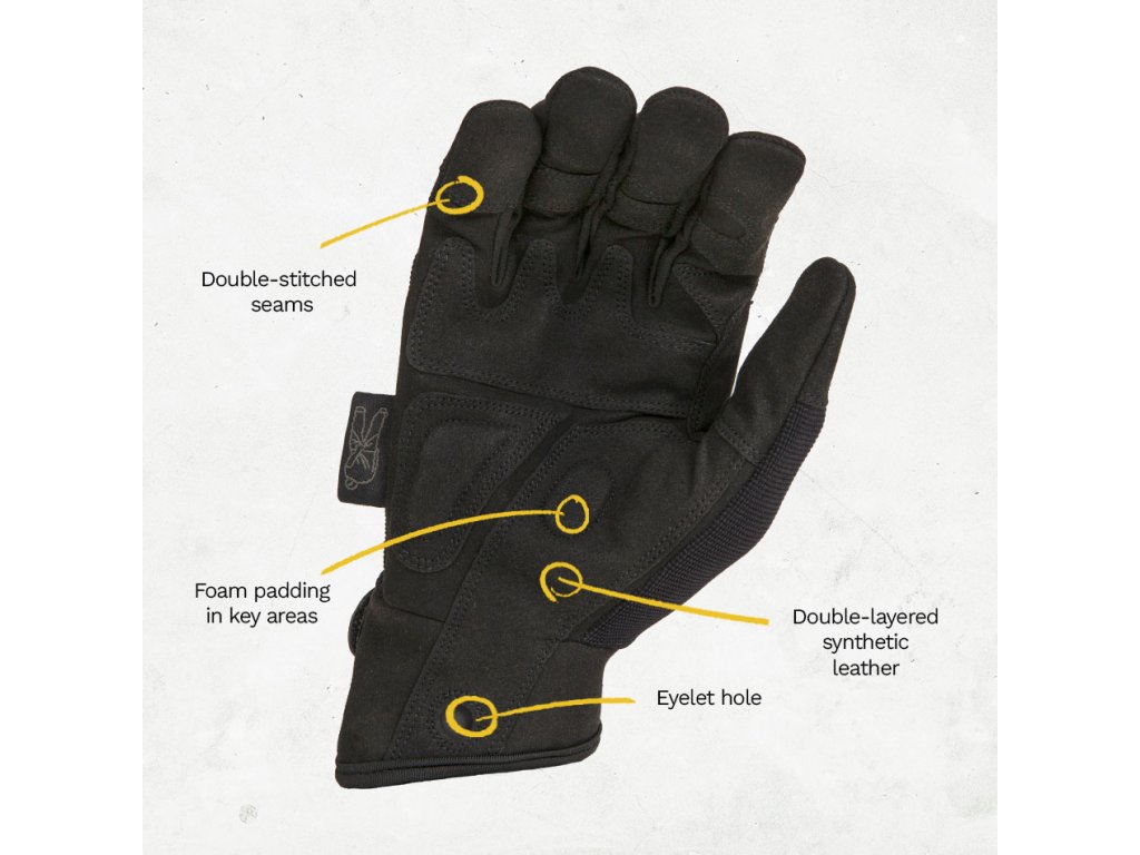 •Součást řady rukavic Skin-Free PPE od Dirty Rigger (bez použití zvířecí kůže).