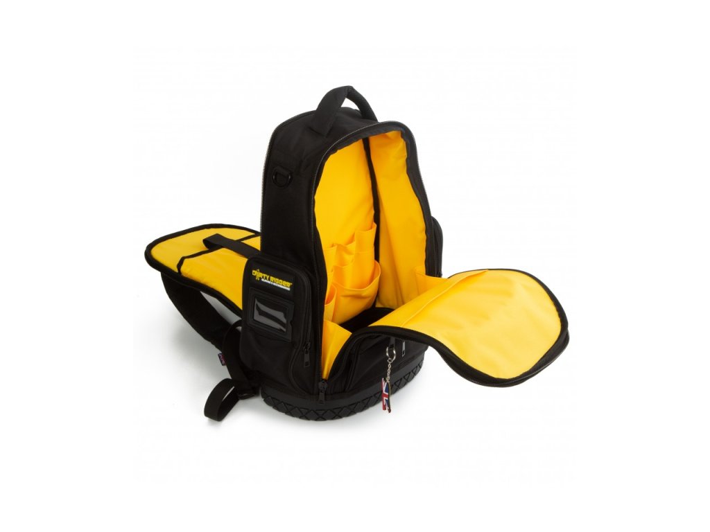 Navrženo techniky, vyrobeno firmou Dirty Rigger. Batoh Dirty Rigger je výsledkem 18 měsíců vývoje produktu s přispěním specialistů z různých průmyslových odvětví po celém světě. Každý centimetr byl pečlivě navržen a sestaven tak, aby uživateli poskytl co nejlepší využití prostoru, organizace a přístupu. Je tak odolný, prostorný a všestranný, že může být jediným batohem, který kdy budete potřebovat. A navíc je batoh vyroben z 80 % recyklovaných materiálů – což odpovídá 30 plastovým lahvím na vodu.