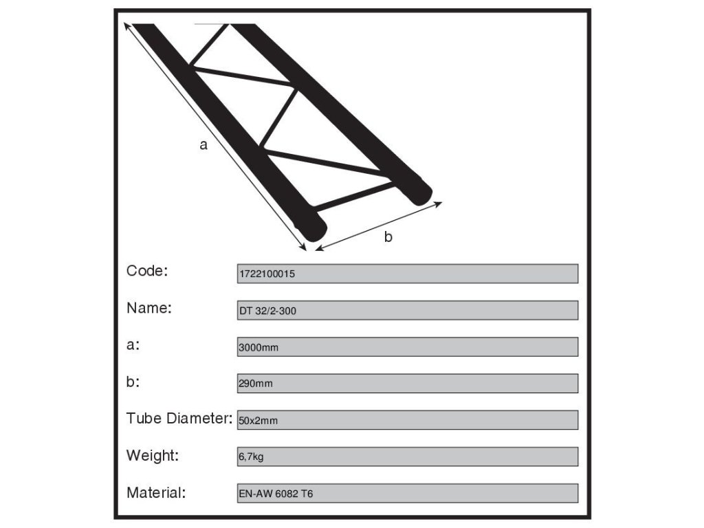 Duratruss DT 32/2-025 je duální příhradová konstrukce. Spojování probíhá pomocí kónické spojky se západkou a cepem, které najdete v balení.
