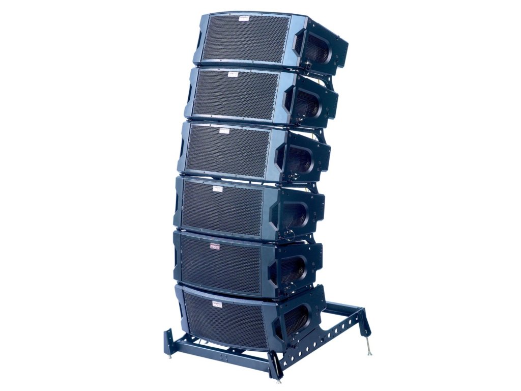 High frequencies are produced by six 1-inch dome tweeters, configured in two vertical columns (each with three tweeters) mounted on a manifold that feeds a single slot in the center of the horn, highly effective in controlling vertical dispersion.