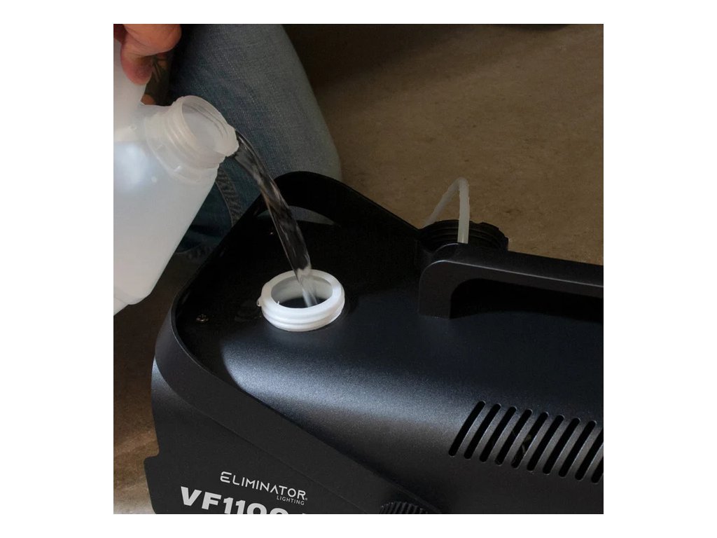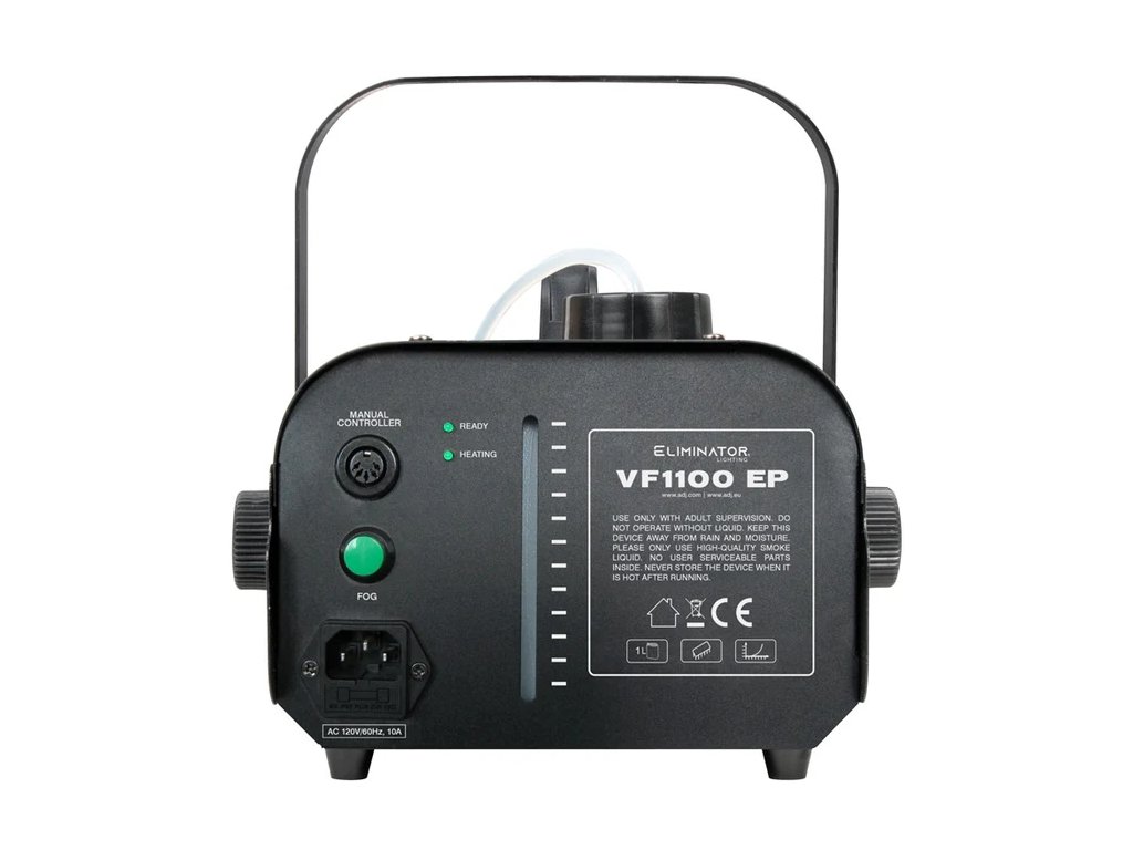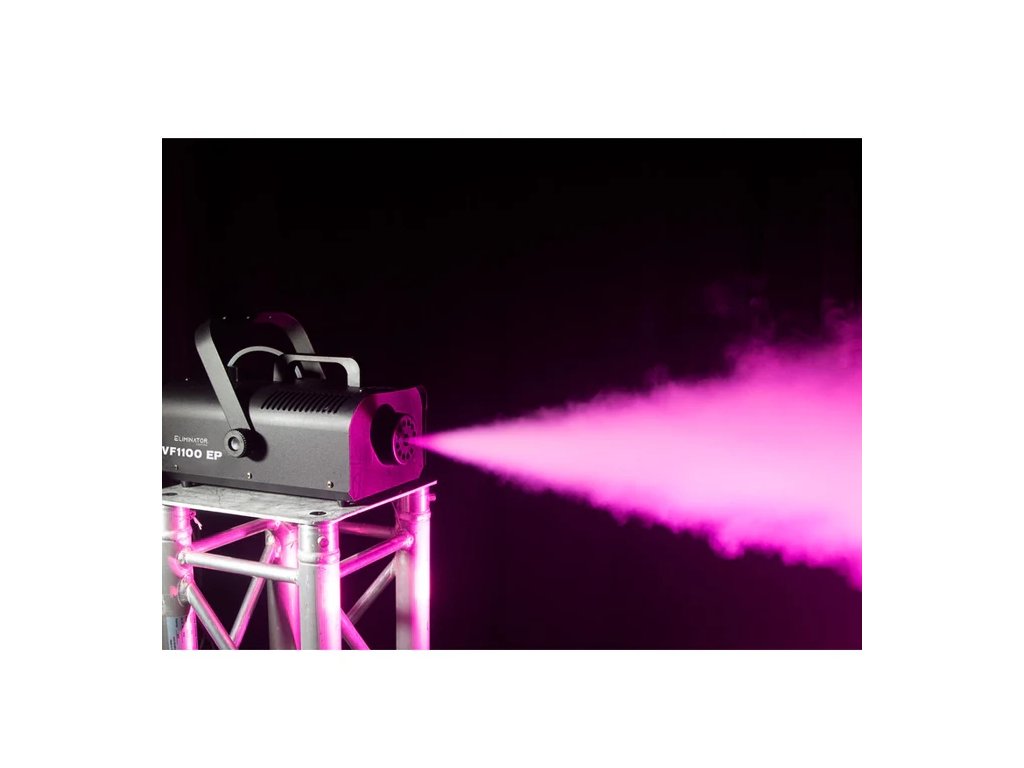 Eliminator Lighting VF1100 EP je mobilní DMX výrobník mlhy s výkonem 850 W, který je skvělý pro mobilní baviče a středně velké noční kluby a bary, kde vytvoří specifickou atmosféru.