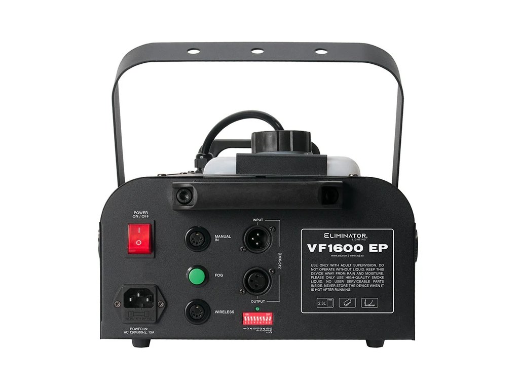 Eliminator Lighting VF1600 EP je mobilní DMX výrobník mlhy s výkonem 1650 W, který je skvělý pro mobilní baviče a středně velké noční kluby a bary, kde vytvoří specifickou atmosféru.