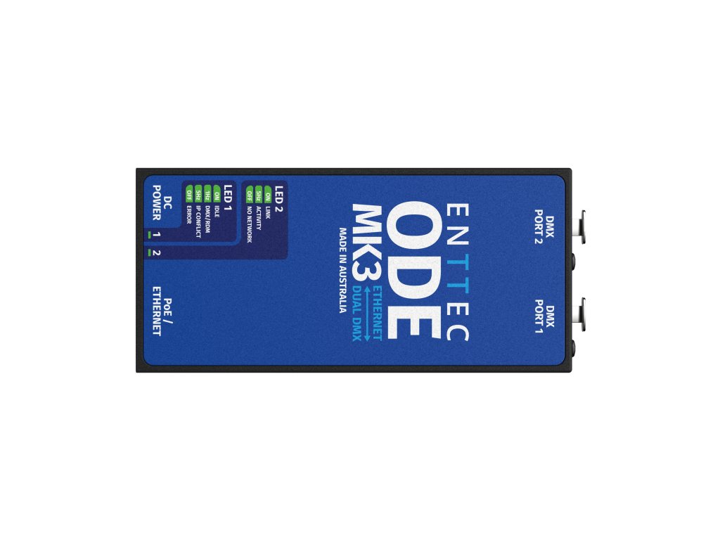 Díky snadné konfiguraci a zprovoznění prostřednictvím lokálního síťového rozhraní lze Enttec ODE MK3 nastavit z libovolného počítače ve vaší síti. Funkce Current Port Buffer (vyrovnávací paměť aktuálního portu) umožňuje prohlížet aktuální hodnoty DMX a tím pružně reagovat na případné problémy vaší instalace.