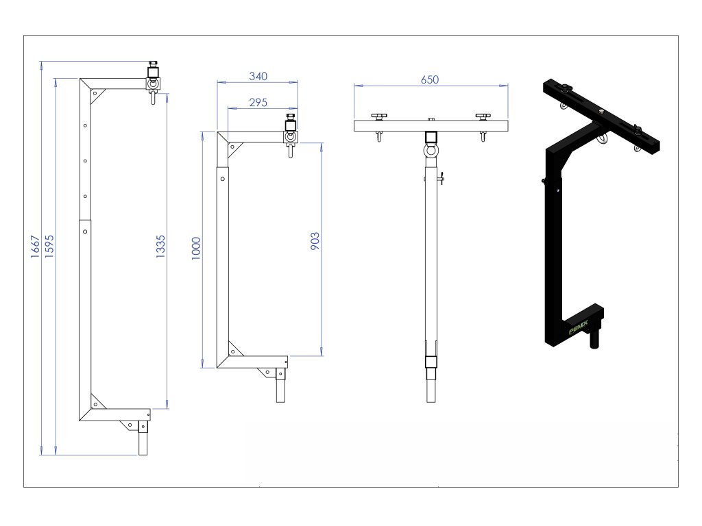 Teleskopický držák "C" pro audiosystémy se 3 závěsnými body. Maximální zatížení: 110 kg. Kompatibilní s teleskopickými nosnými věžemi. Řada MEGARA / ELV.