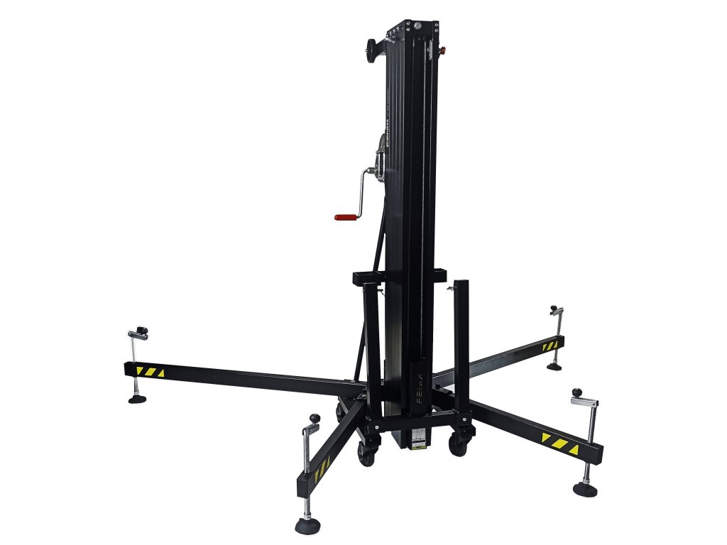 AT-06B COMPACT Teleskopický stativ s čelním nakládáním. Řada AT umožňuje zvedání nákladu ze země s minimálním úsilím. Použití: Jsou ideální pro zvedání line array soustav, umožňují také zvedat příhradové konstrukce a LED obrazovk